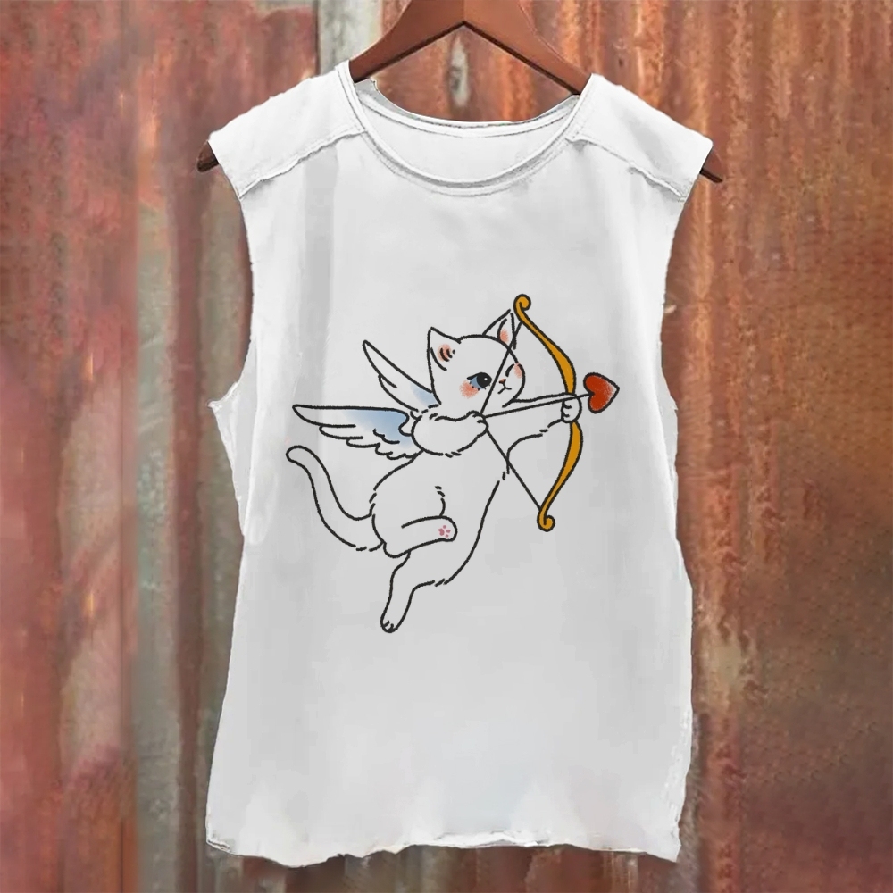 Angel Cupid Cat Graphic Unisex Casual Printed Tank Top