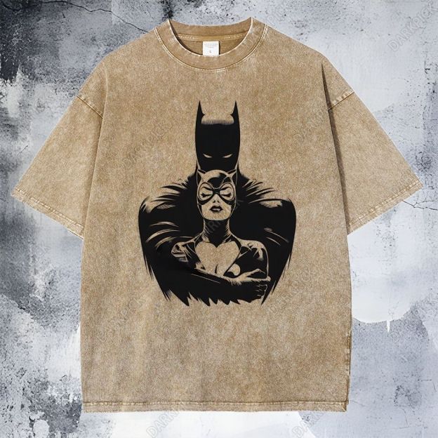 Batman and Catwoman comic art Washed T-Shirt