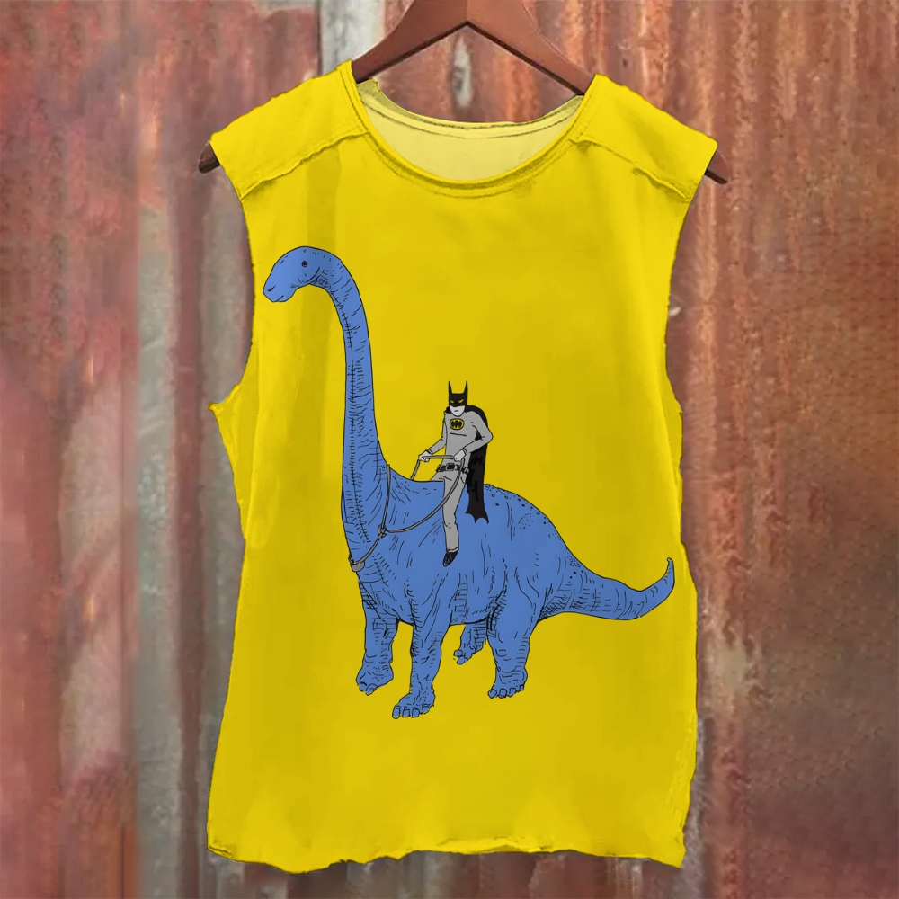 Batman on a Dinosaur funny art Unisex Casual Printed Tank Top