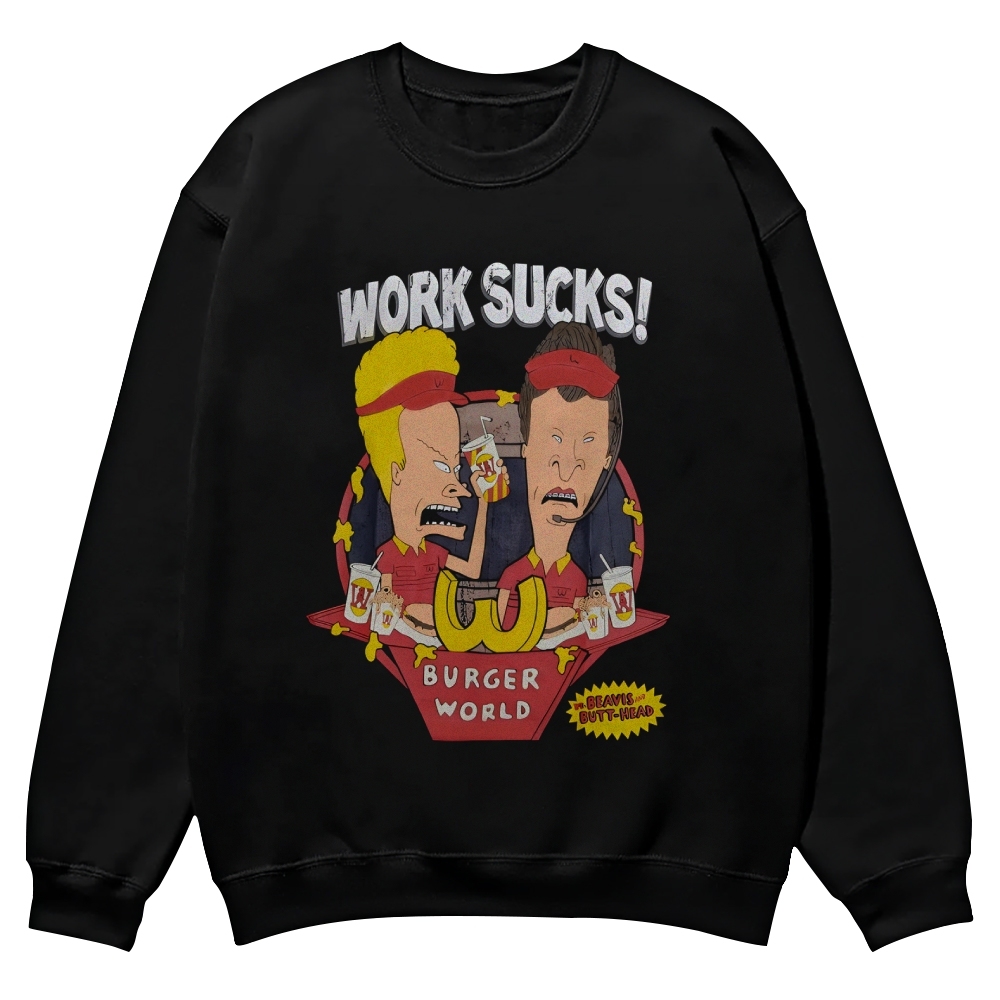 Beavis and Butthead 'Work Sucks' Casual Crewneck Sweatshirt