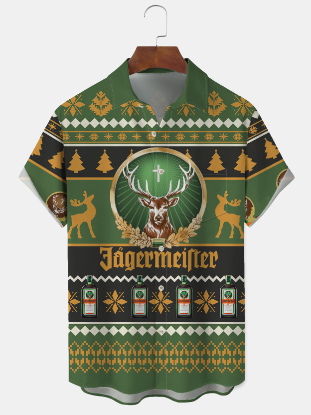 Darkpick®Unisex 3D Printed Jagermeister Ugly Christmas Button Down Shirt 1334q