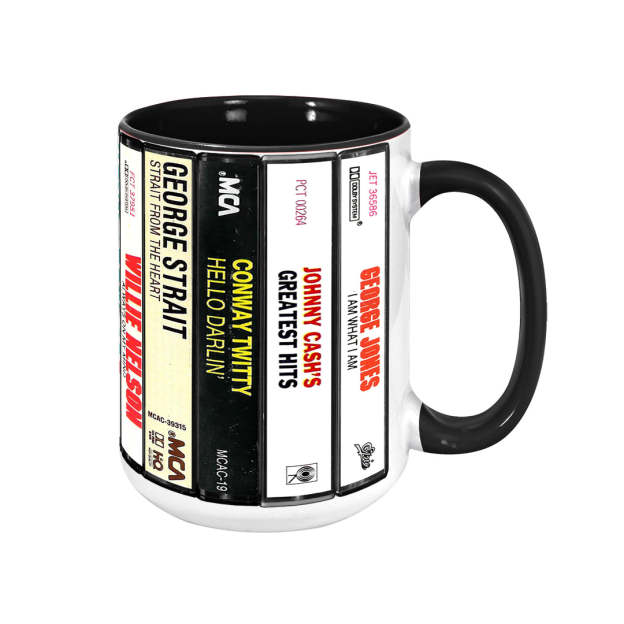 Classic Country Music Albums Cassettes Retro Accent Mug