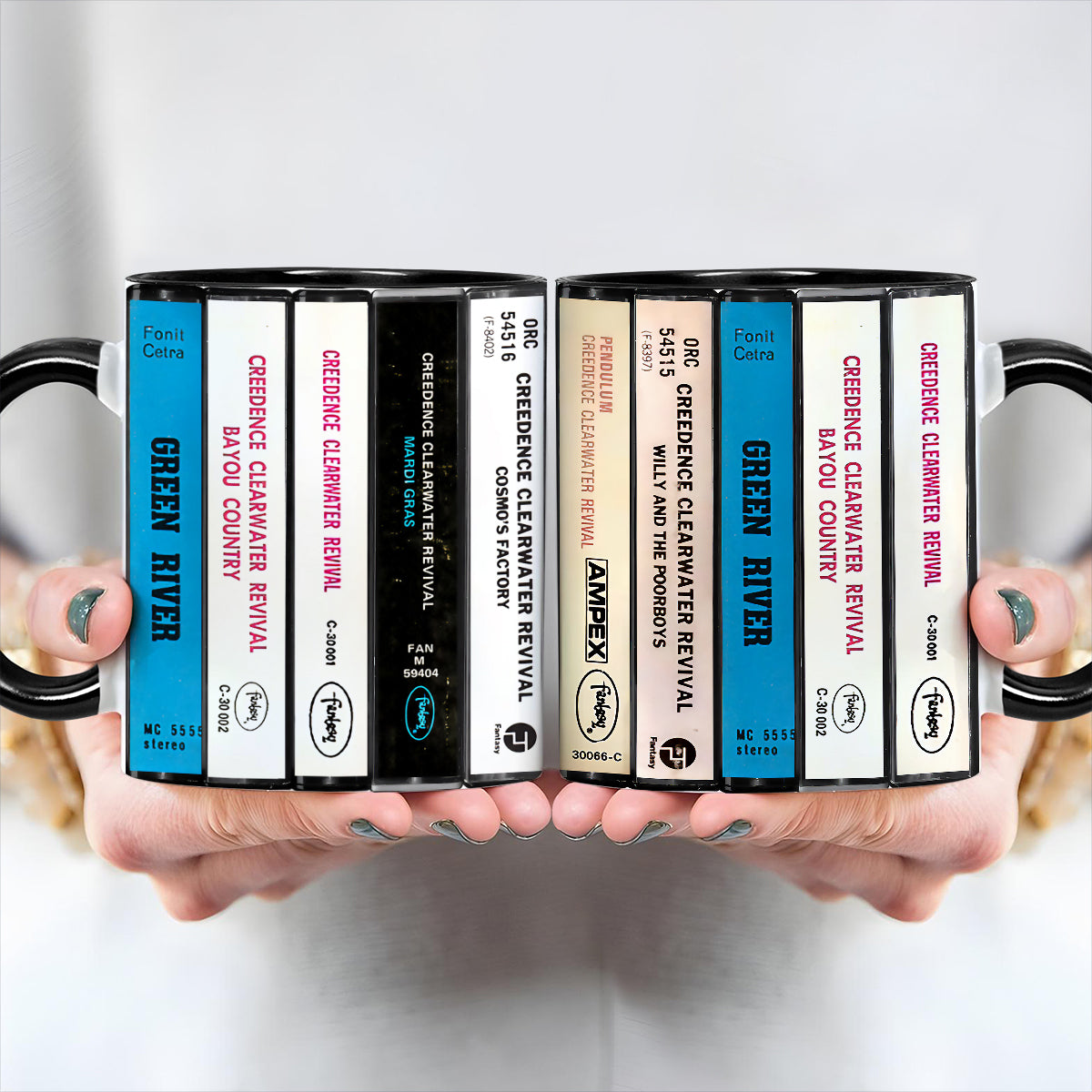 Creedence Clearwater Revival Albums Cassette Collection Retro Accent Edge-to-Edge Printed Mug