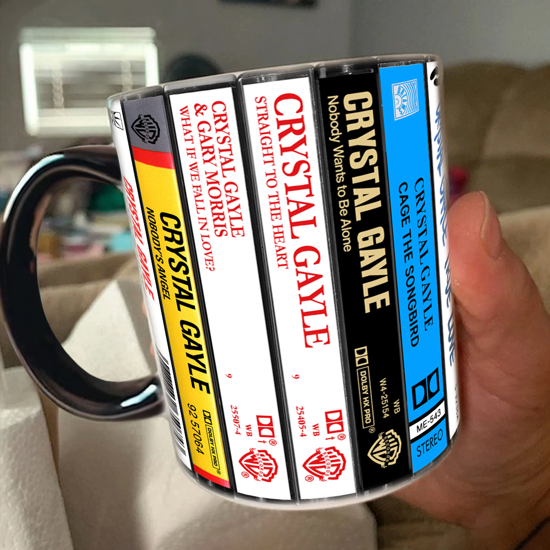 Crystal Gayle Albums Cassette Collection Retro Accent Edge-to-Edge Printed Mug