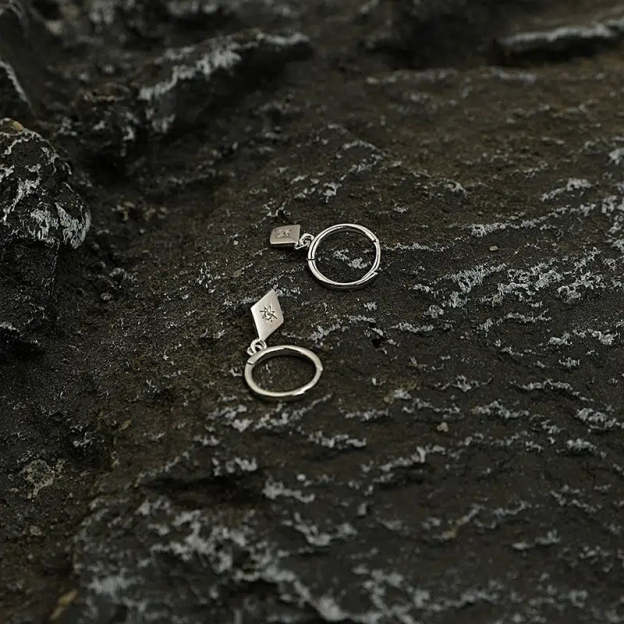 Diamond-Shaped Charm Hoop Earrings