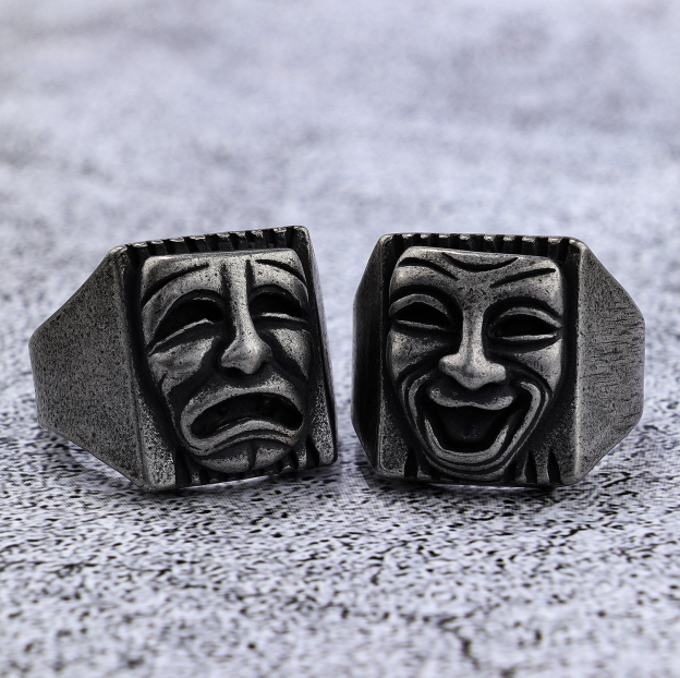 Under the spotlight of ancient Greek theater stages, the masks of tragedy and comedy are eternal footnotes to human emotions. This stainless - steel ring condenses “the dual faces of sorrow and joy” into the band. The furrows of the frowning brow hold the twists and turns of life, and the curves of the smiling lines are filled with passionate warmth. Wearing it, you are the protagonist of your own life drama.