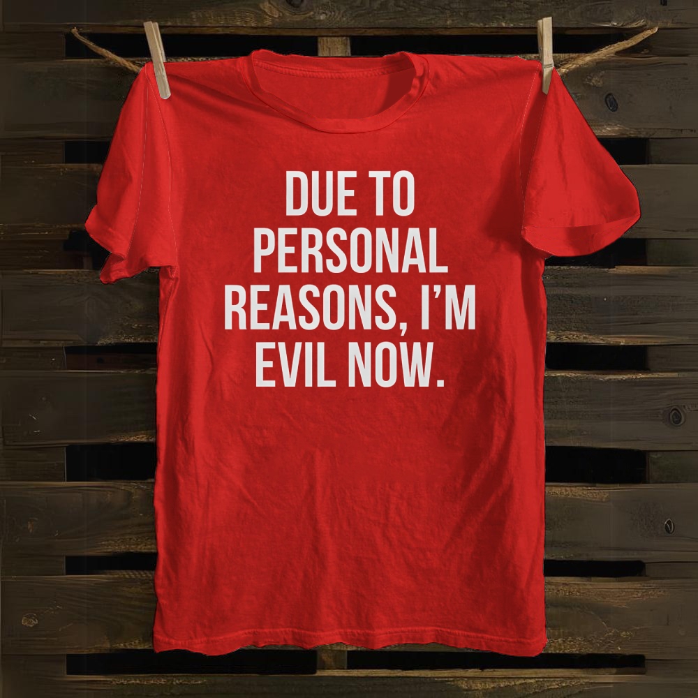 DUE TO PERSONAL REASONS, I'M EVIL NOW cotton T-shirt