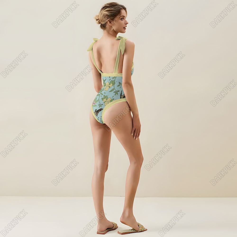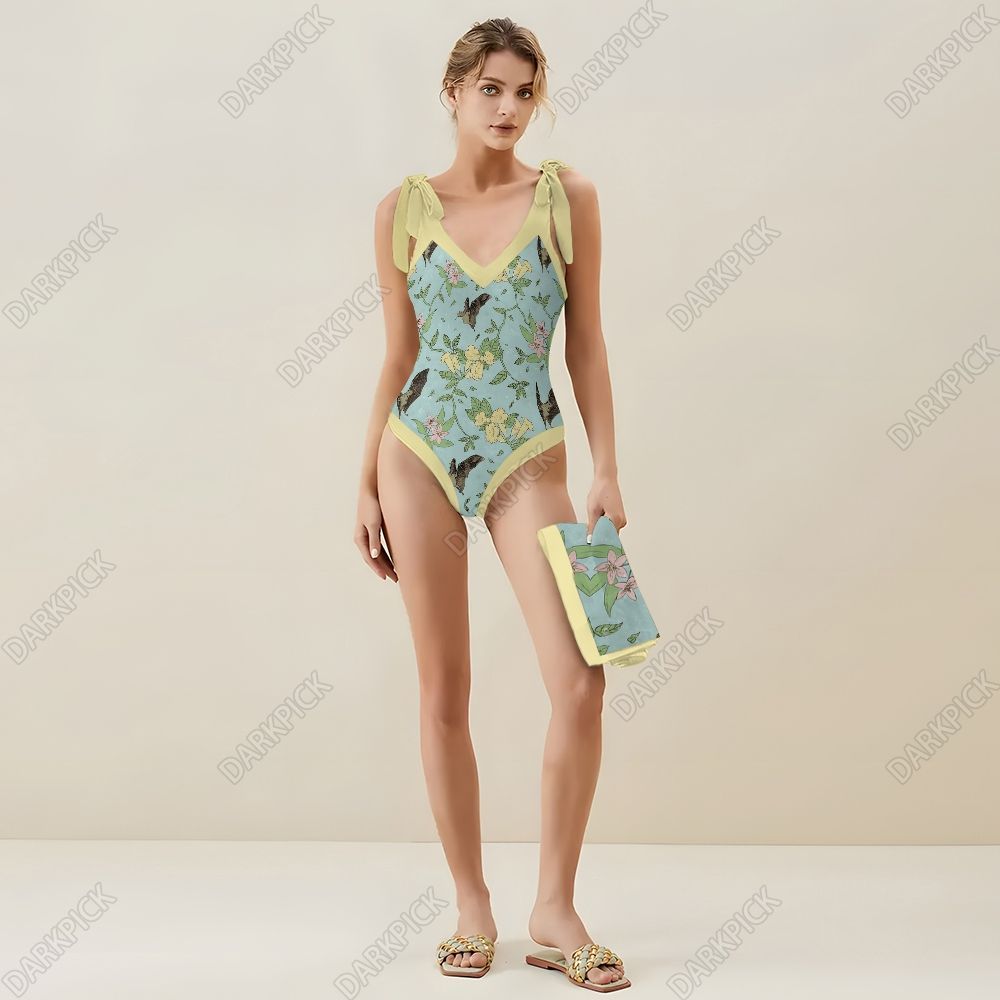 Flowers Surround Bat Art Women's Printed One Piece Swimsuits and Cover Ups