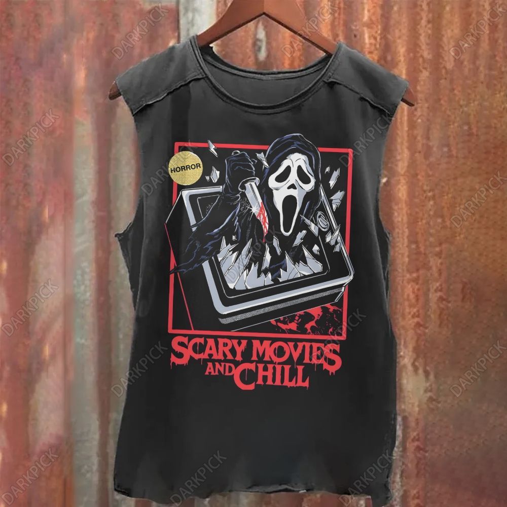 Ghostface "Scary Movies and Chill" Scream Horror Movie Washed Tank Top