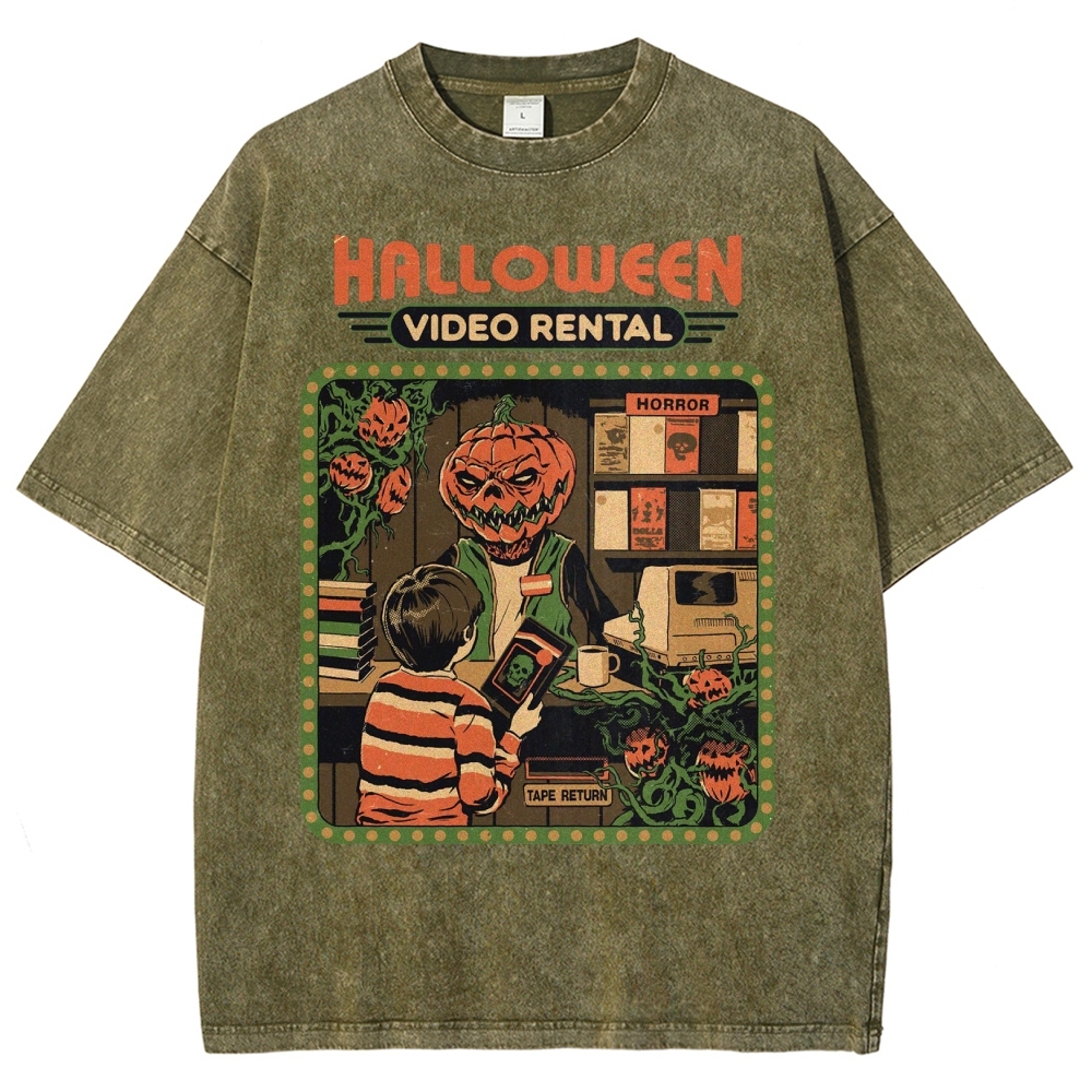Unisex Halloween Video Rental Washed T-Shirt