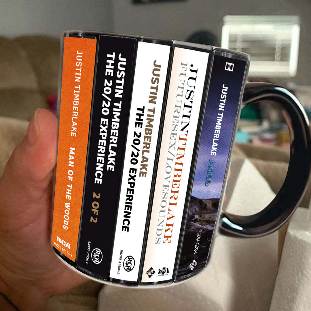 Justin Timberlake Albums Cassette Collection Retro Accent Edge-to-Edge Printed Mug