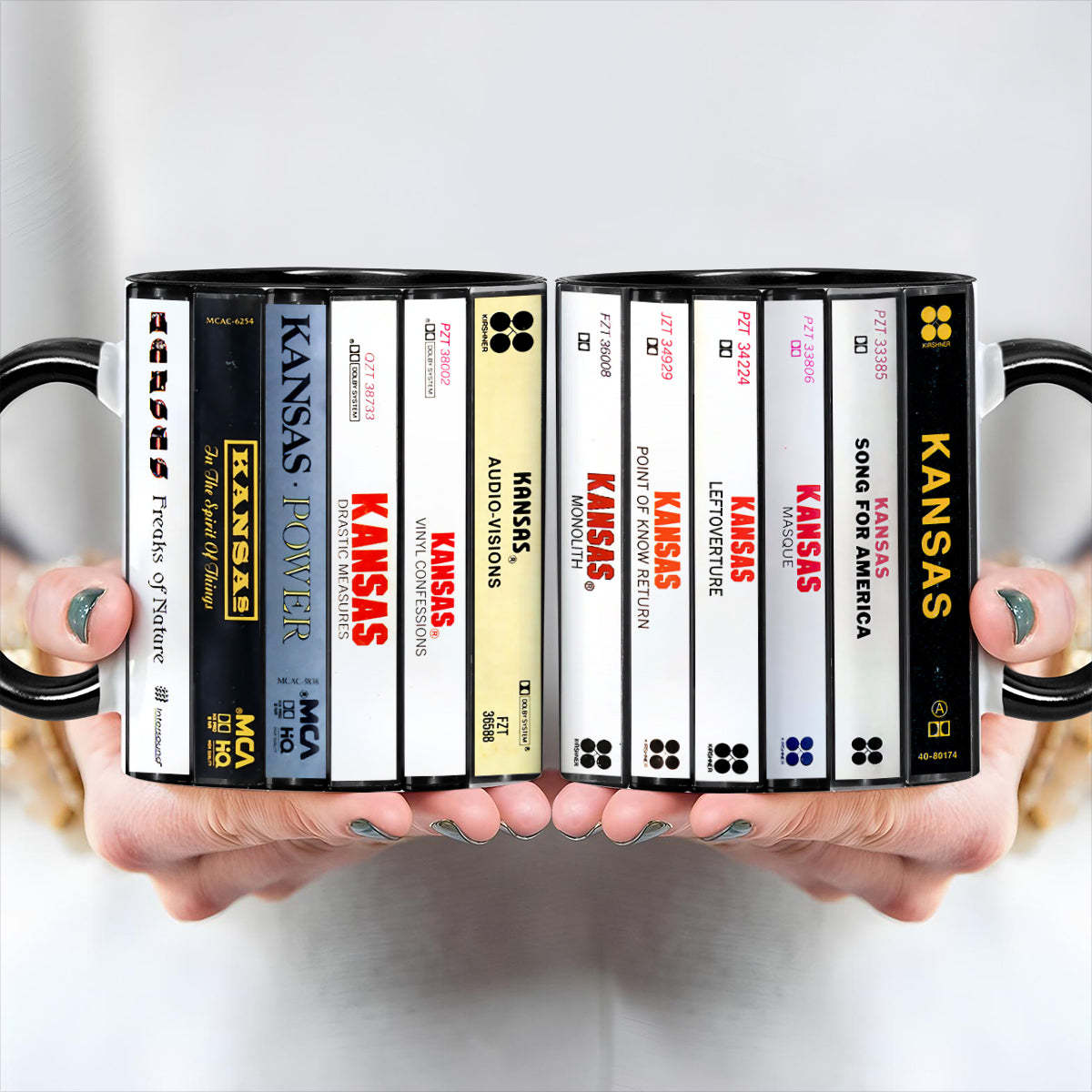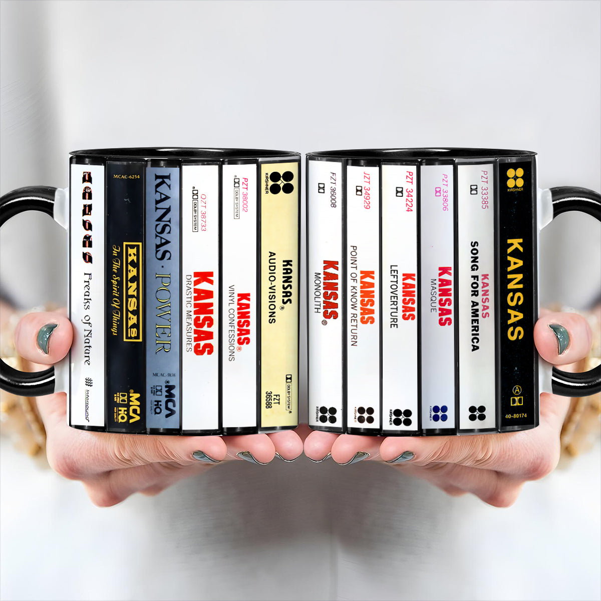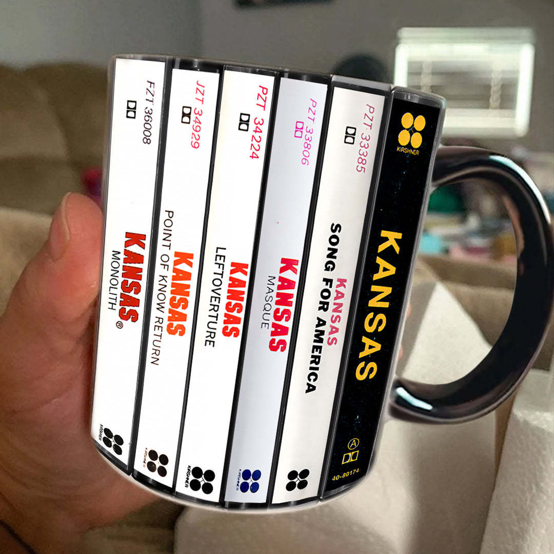 Kansas Albums Cassette Collection Retro Accent Edge-to-Edge Printed Mug