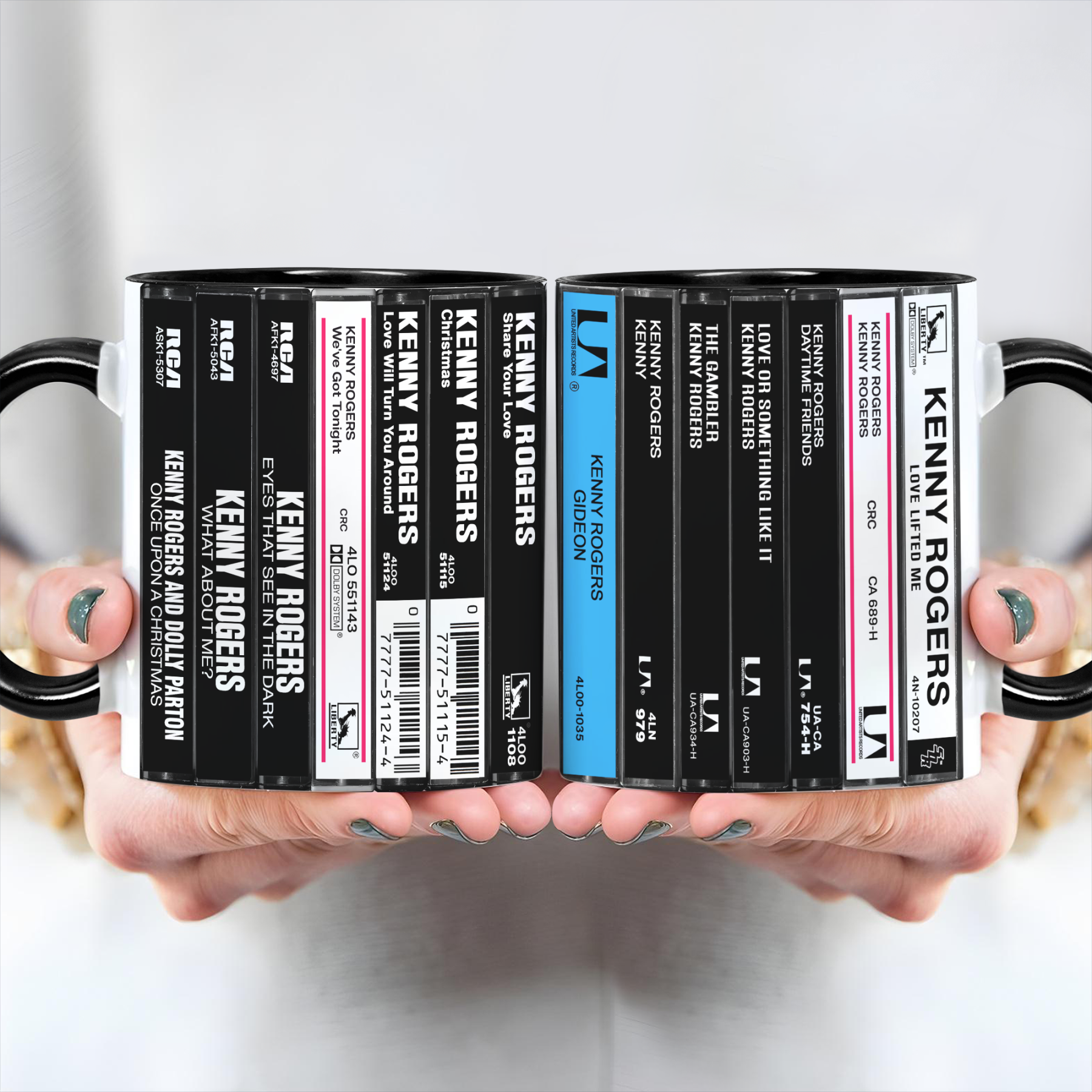 Kenny Rogers Albums Cassette Collection Retro Accent Edge-to-Edge Printed Mug