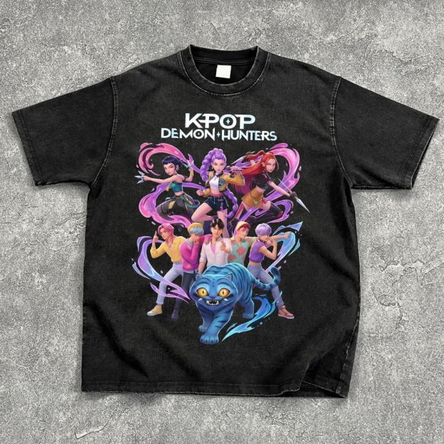 KPop Demon Hunters Girls Group Shot Washed Oversize T-Shirt