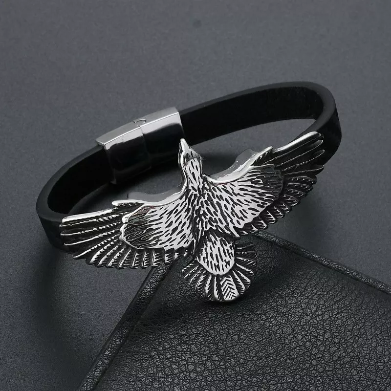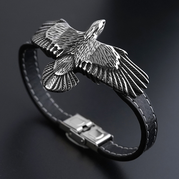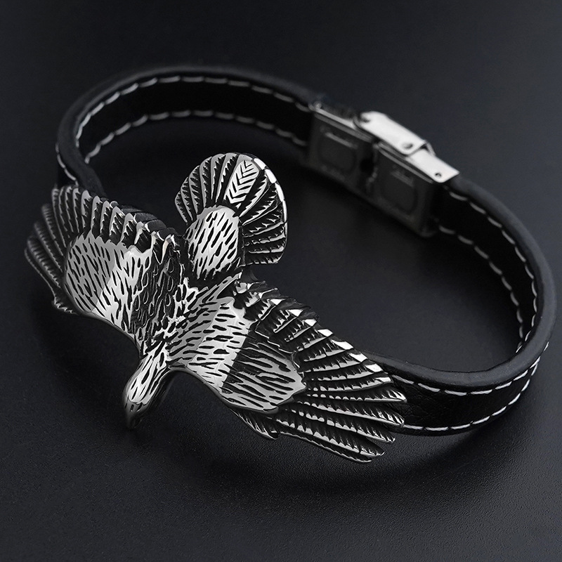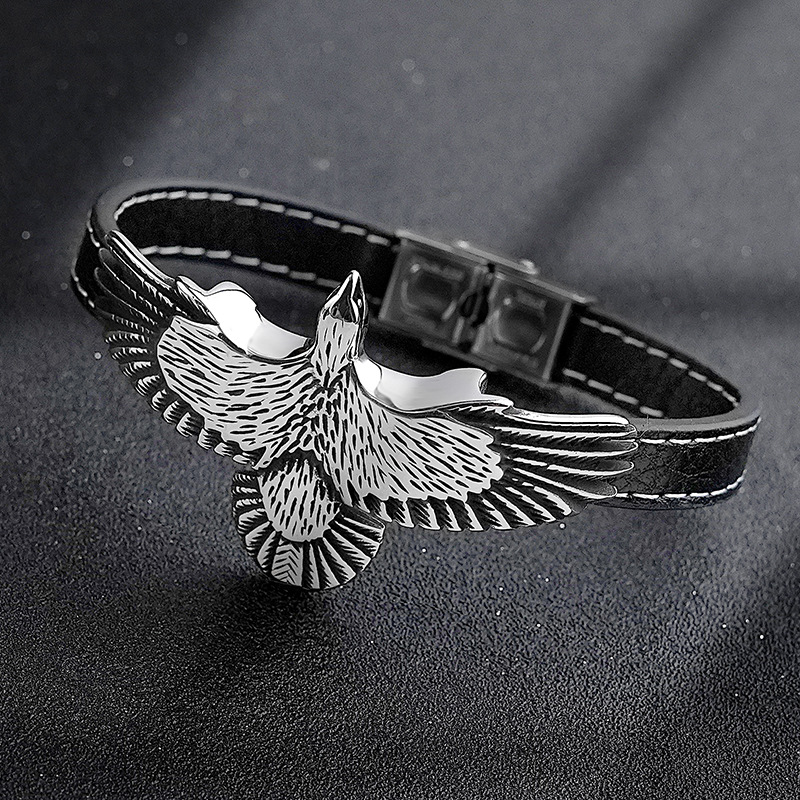 The bracelet strap is made of high - quality leather, which is soft, durable, and comfortable against the skin. The stainless steel components not only ensure the sturdiness of the eagle - shaped ornament but also possess excellent oxidation resistance. It's not easy to fade or rust even with long - term wear, maintaining its new - like appearance over time.