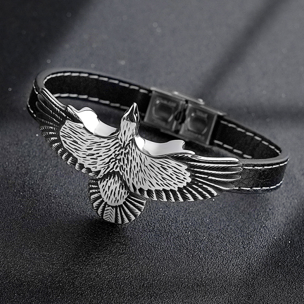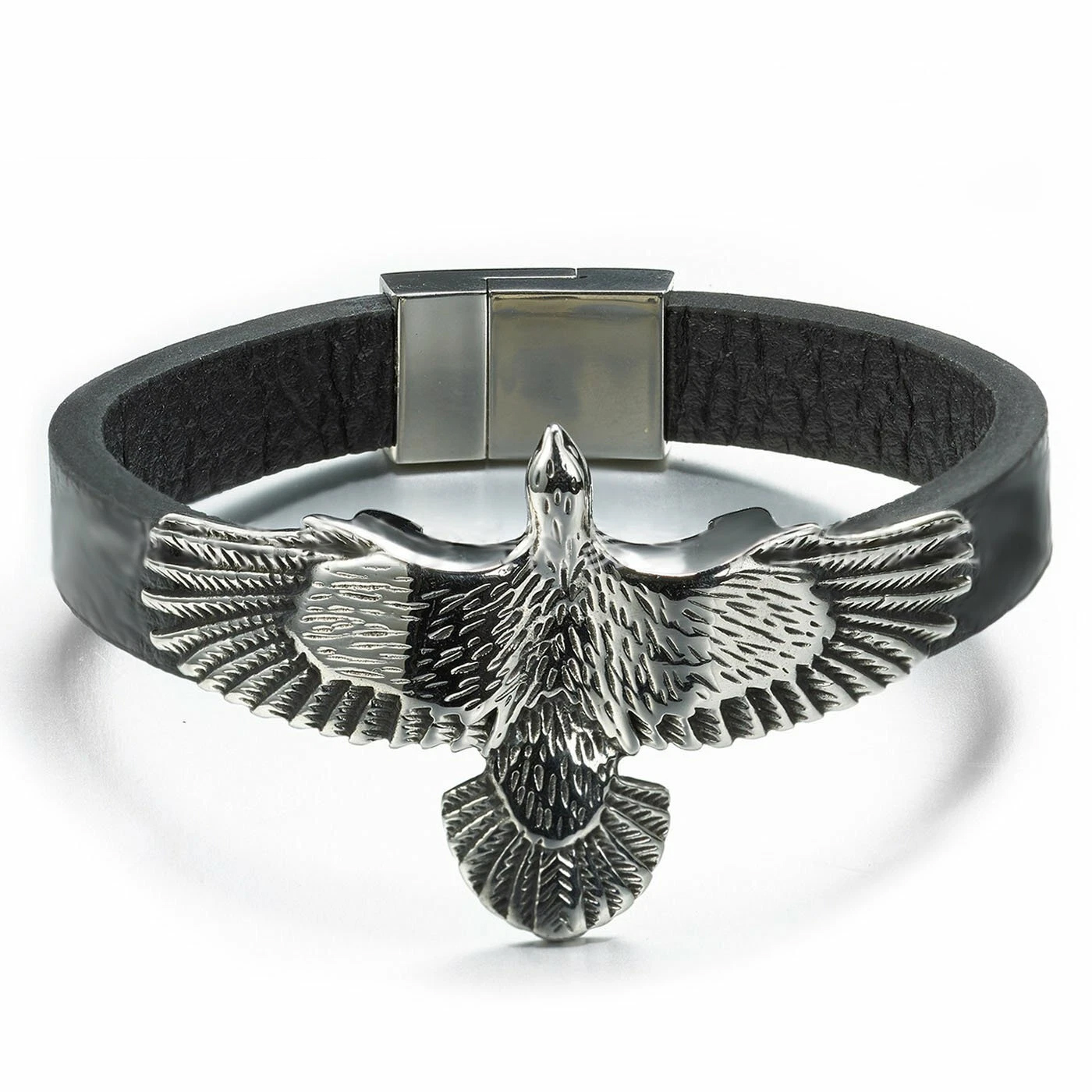 This leather winged eagle stainless steel bracelet is a perfect blend of fashion and individuality.