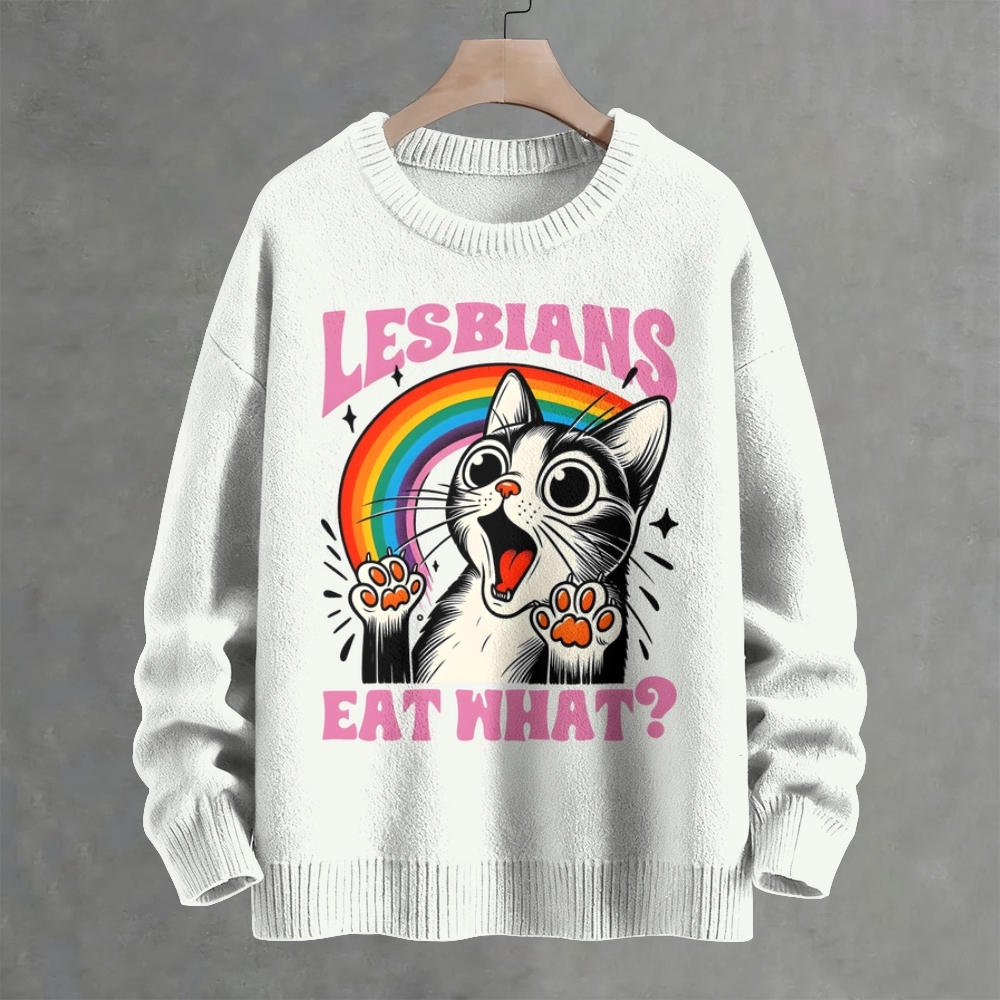 Lesbians Eat What? Cat Design Crew Neck Sweater