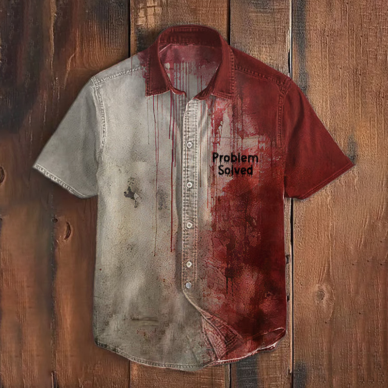 Men's Bloody Problem Solved Halloween Print Casual Pocket Short Sleeve Shirt