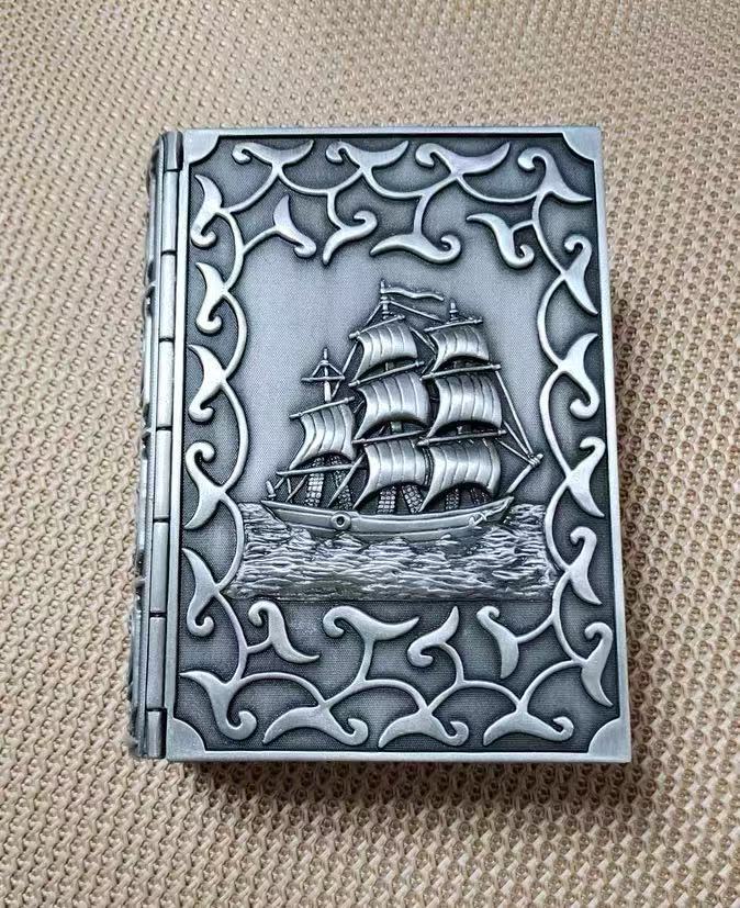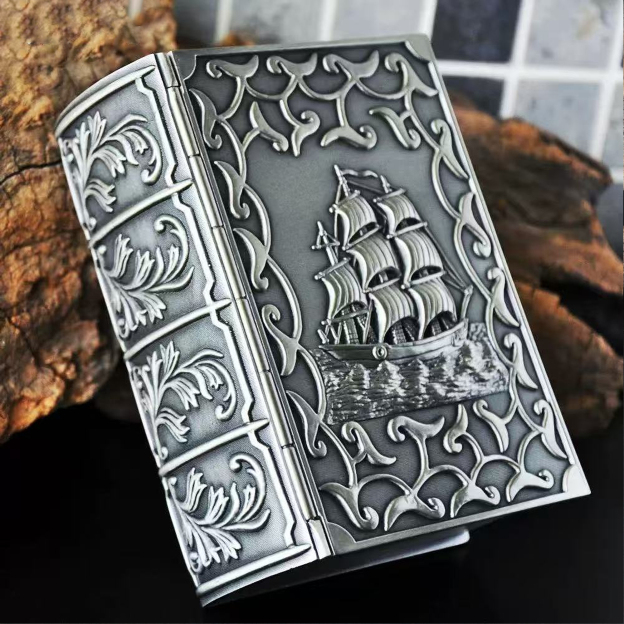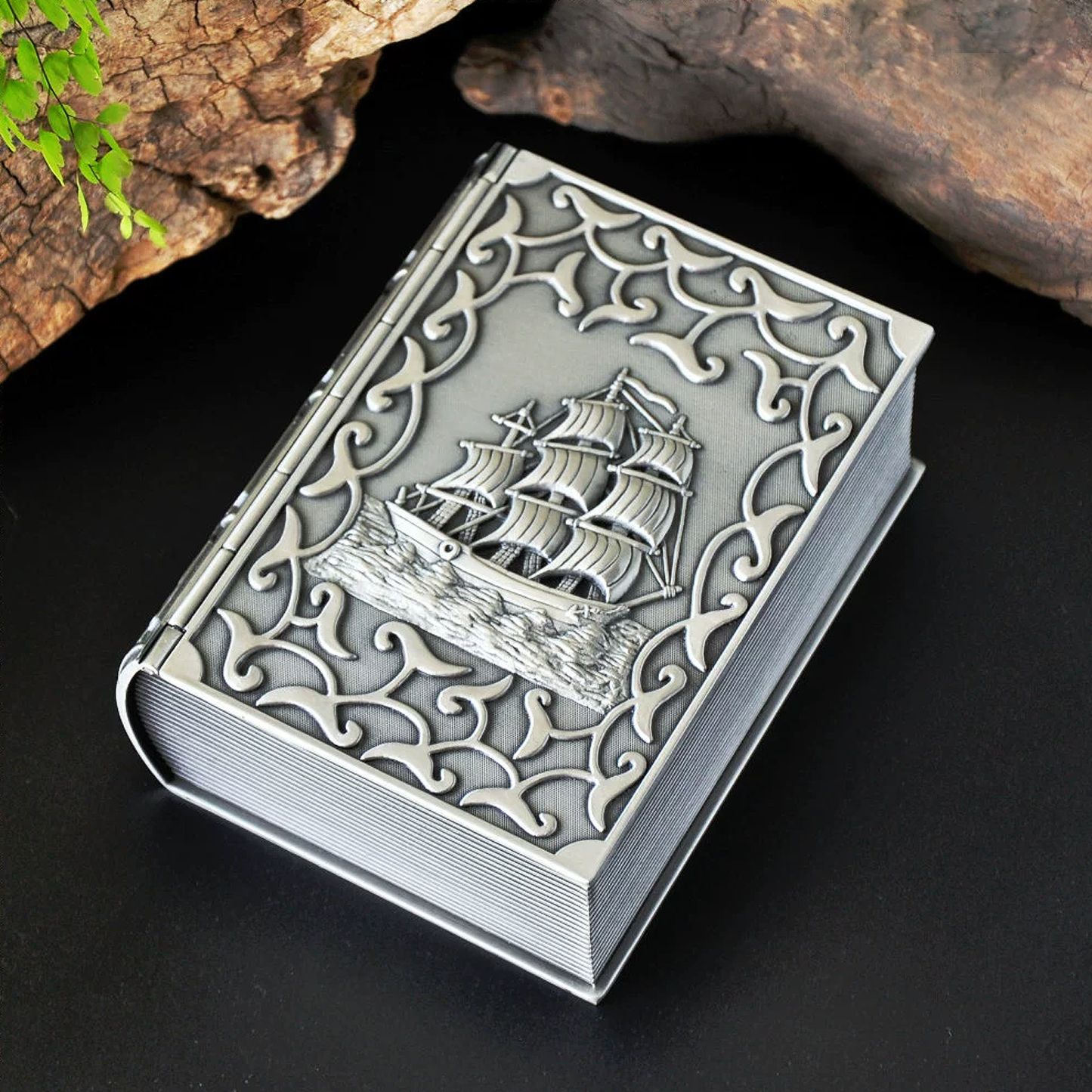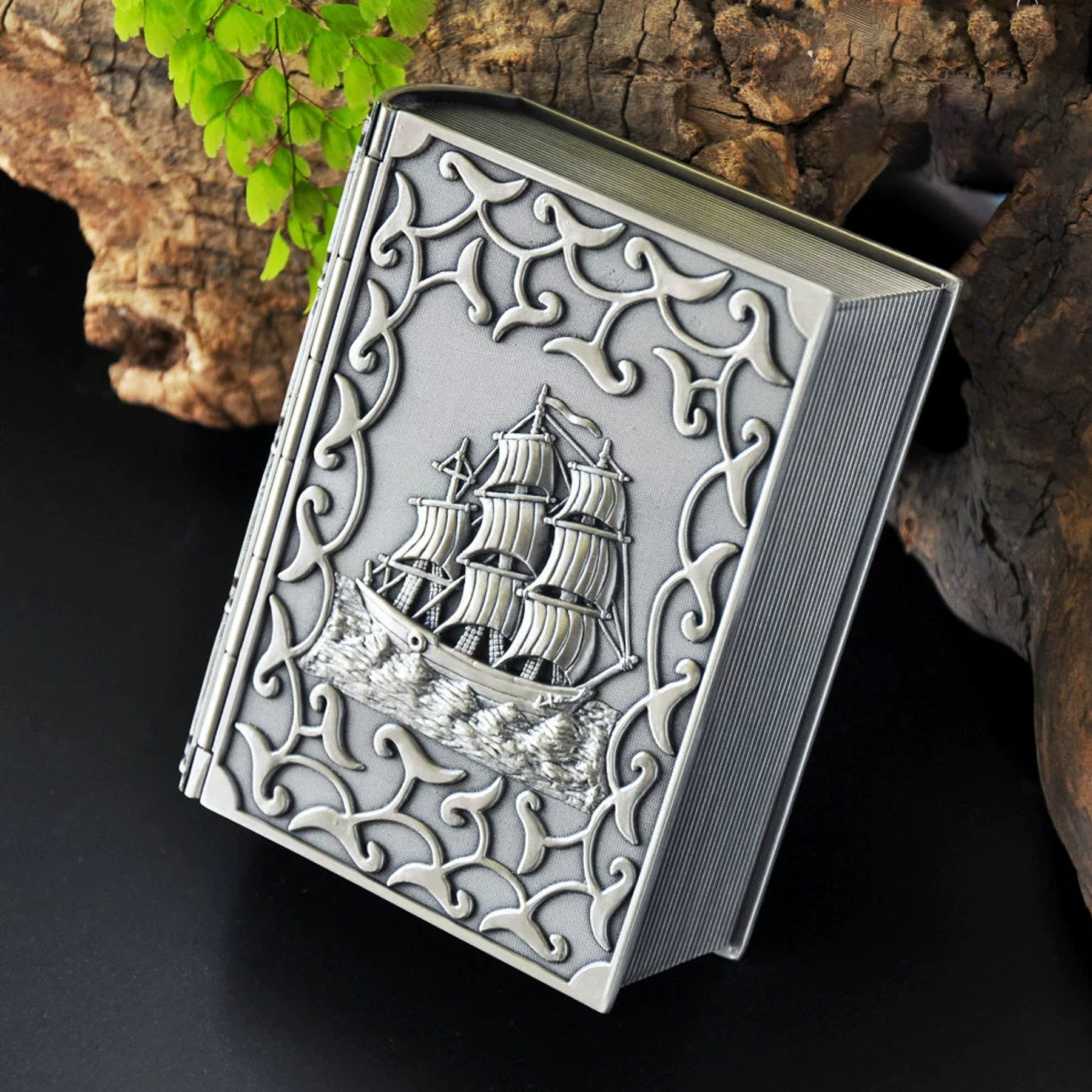 Metal Jewelry Box in Book - like Shape: Caribbean Pirate - themed Home Decorative Box with Unique and Elegant Carvings
