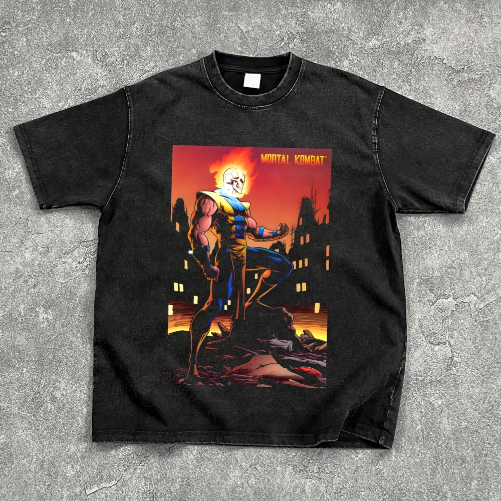 Mortal Kombat fighting game Ghost Rider Washed Oversize T-Shirt
