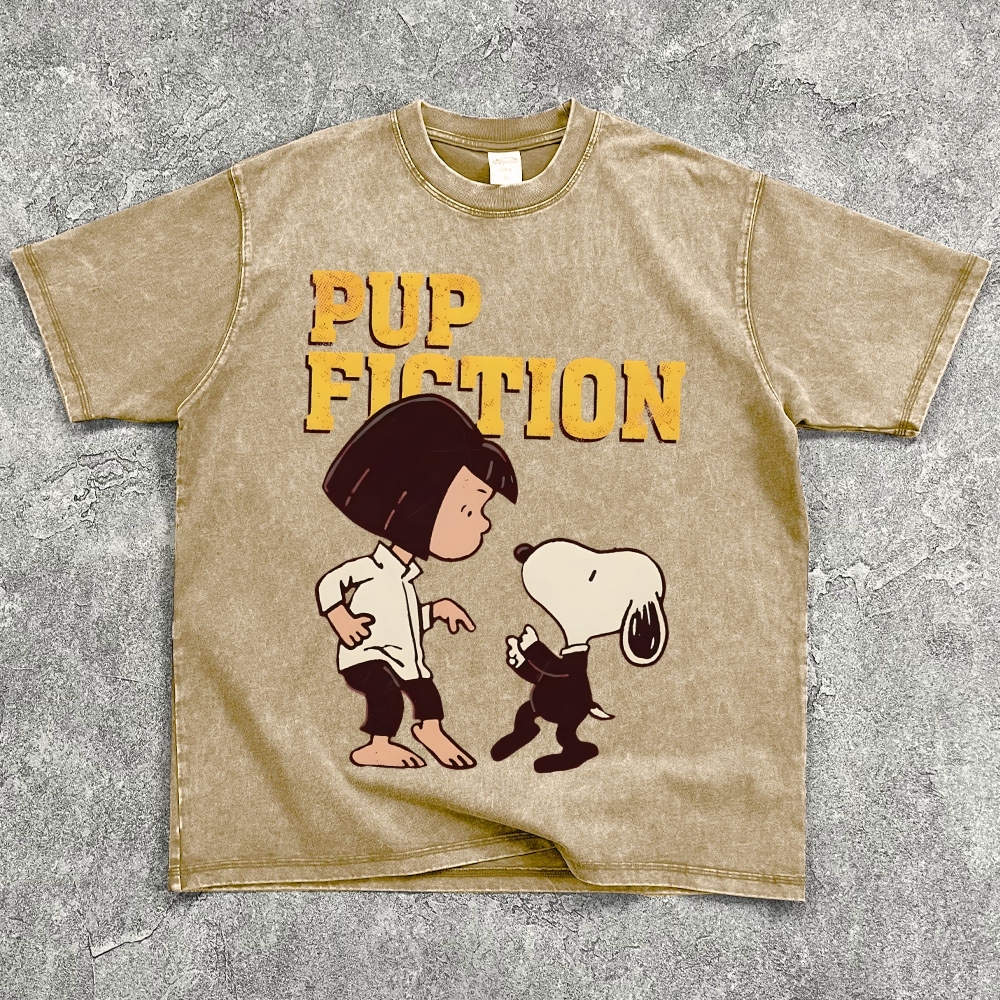 Peanuts Snoopy and Lucy "Pup Fiction" Washed Oversize T-Shirt