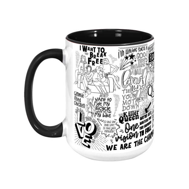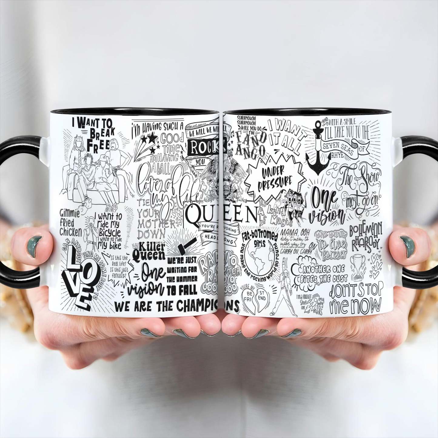 Queen Doodle Lyrics Accent Edge-to-Edge Printed Mug
