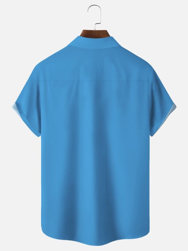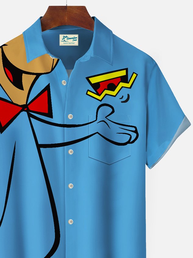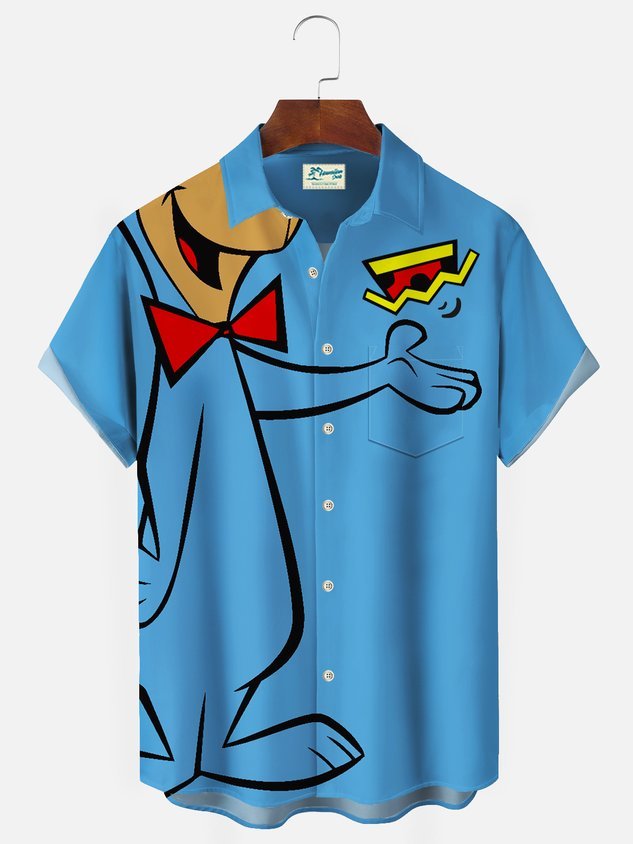 Darkpick 50's Vintage Game Cartoon Dog Blue Men's Hawaiian Shirts Stretch Costume Aloha Camp Pocket Shirts