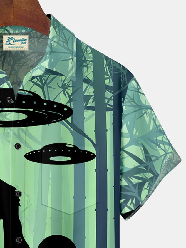 Royaura Bamboo Bigfoot Alien Spaceship Print Men's Hawaiian Oversized Shirt with Pockets
