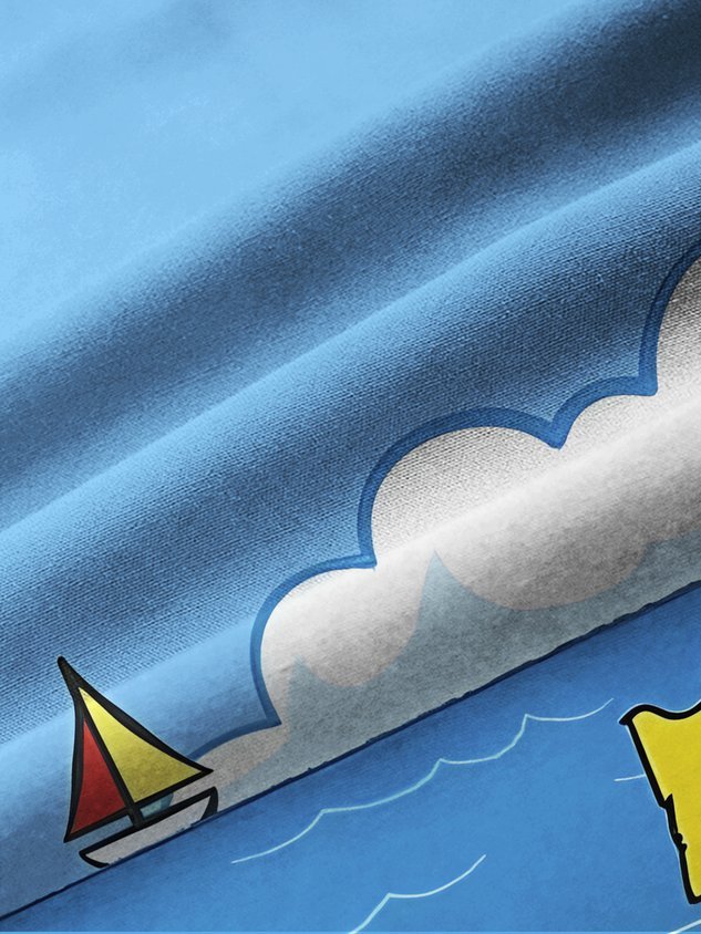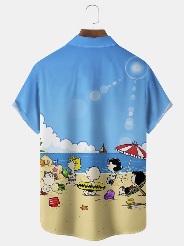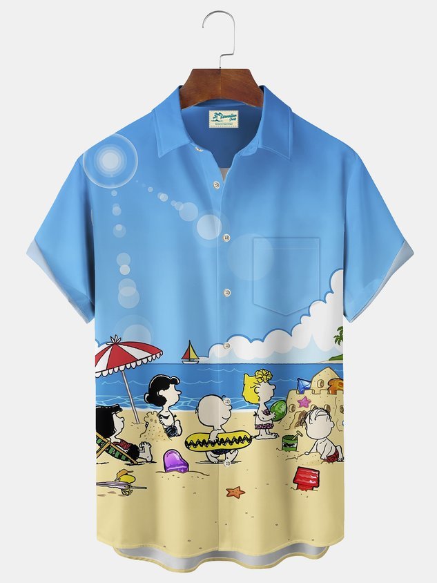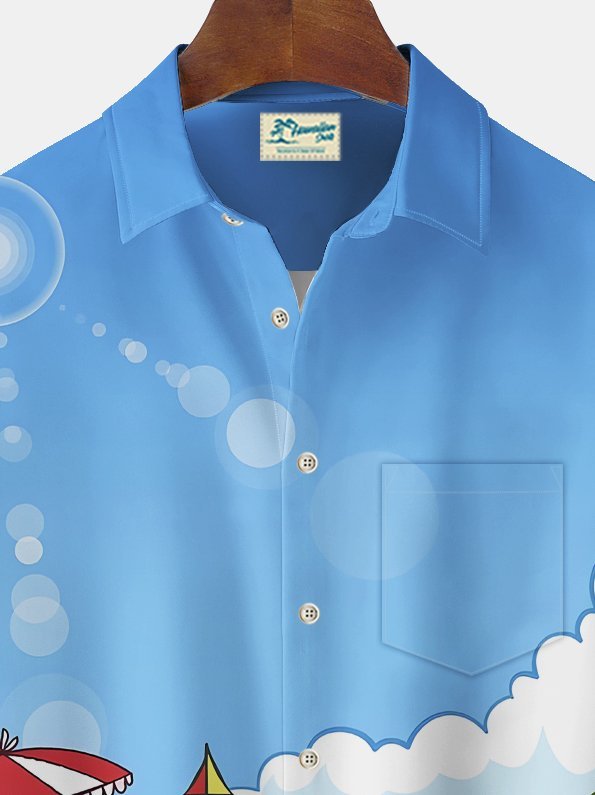 Darkpick® Beach Vacation Men's Hawaiian Shirt Fun Cartoon Print Pocket Camping Shirt Big Tall