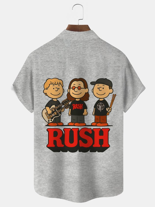 Royaura® Musical cartoon print men's button pocket short-sleeved shirt Big & Tall