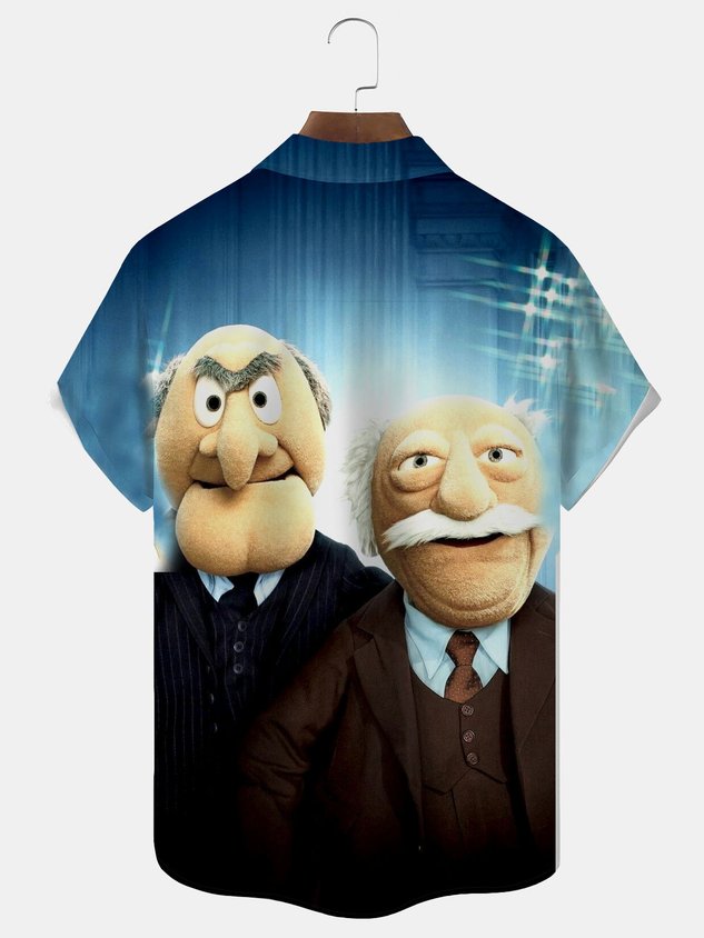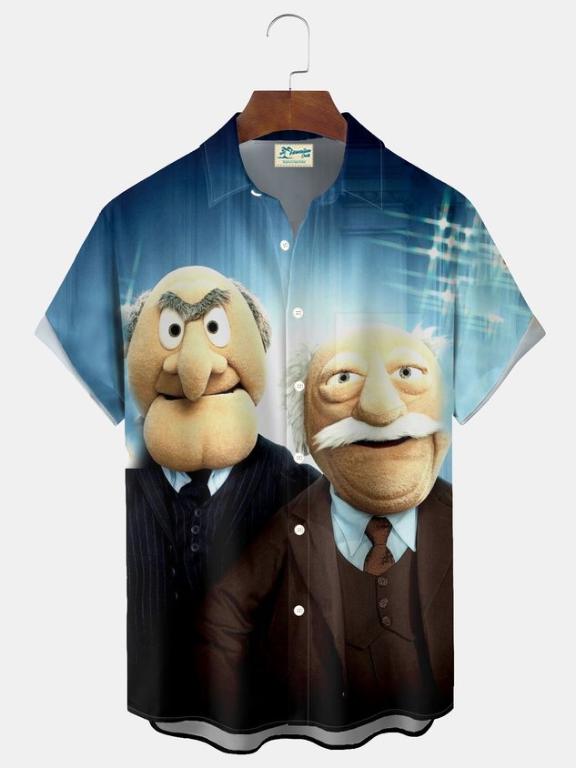Royaura® Retro Cartoon Print Men's Button-Down Short-Sleeve Shirt Big & Tall