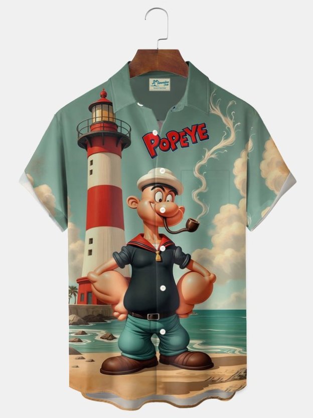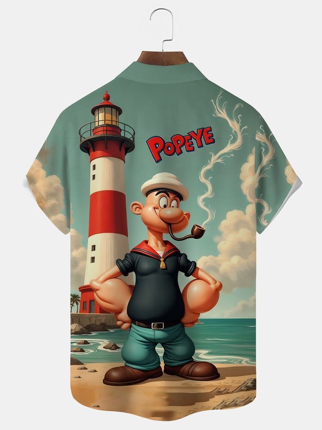 Darkpick® Retro Cartoon Print Men's Button Pocket Short-Sleeve Shirt Big & Tall