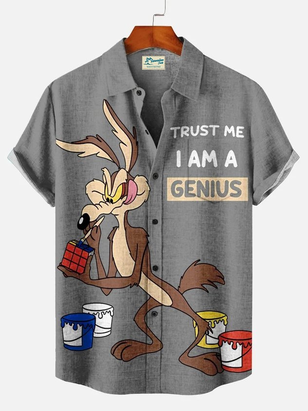 Royaura® Casual Retro Cartoon Character Coloring Cube Print Men's Button Pocket Short-Sleeve Hawaiian Shirt Big & Tall