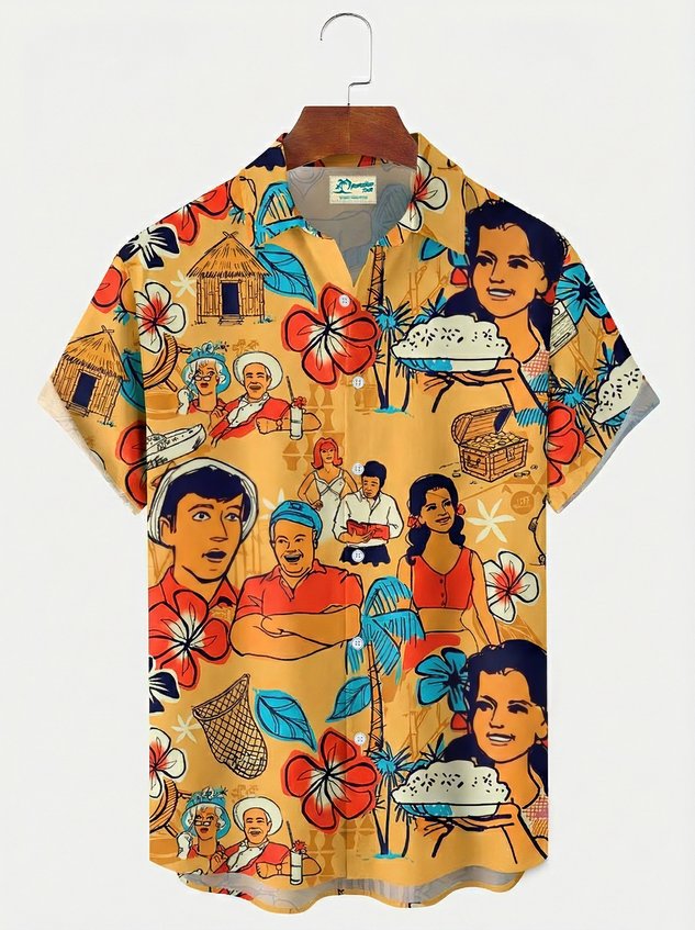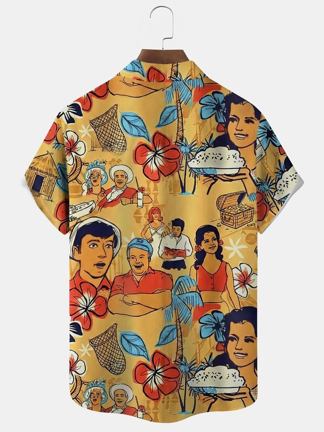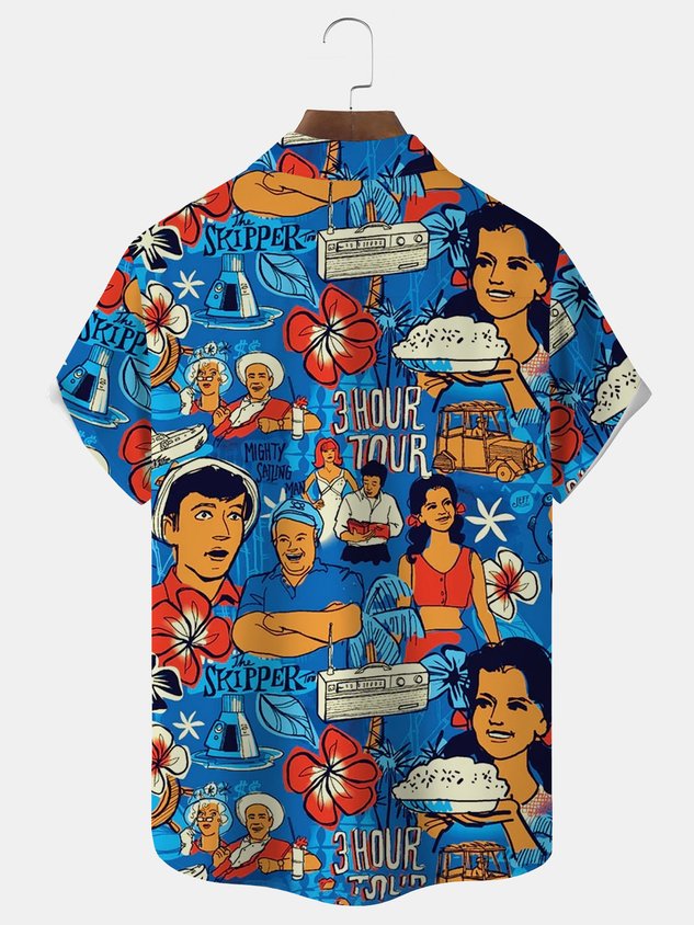 Royaura® Retro Movie Cartoon Print Men's Button Hawaiian Shirt