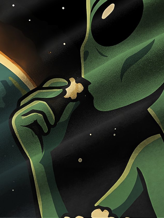 Royaura® Vintage Alien Cartoon Print Men's Casual Stylish Button Pocket Hawaiian Summer Shirts Short Sleeve Shirt Big Tall