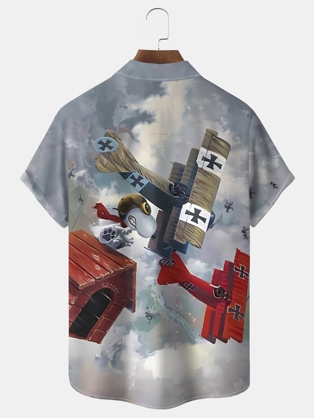 Royaura® Vintage Cartoon Print Men's Casual Stylish Button Pocket Hawaiian Summer Shirts Short Sleeve Shirt Big Tall