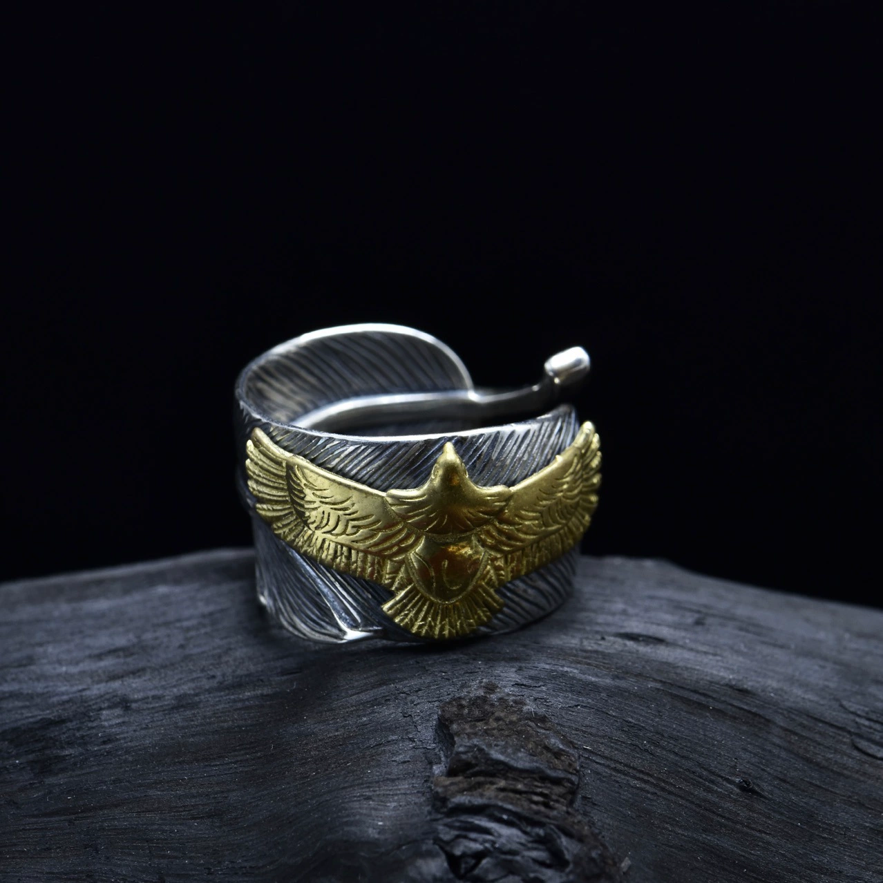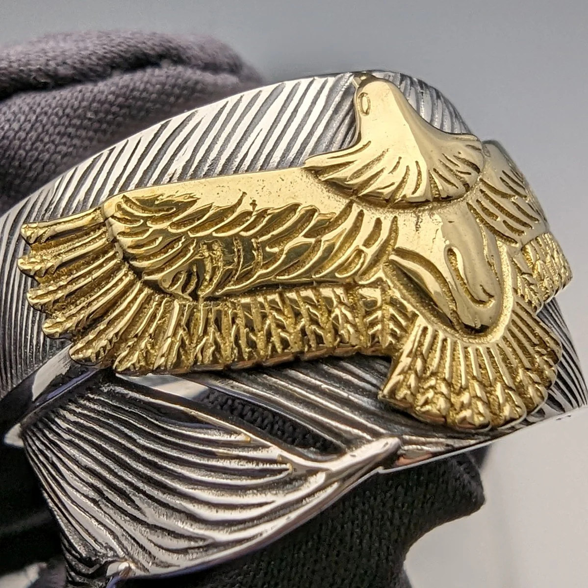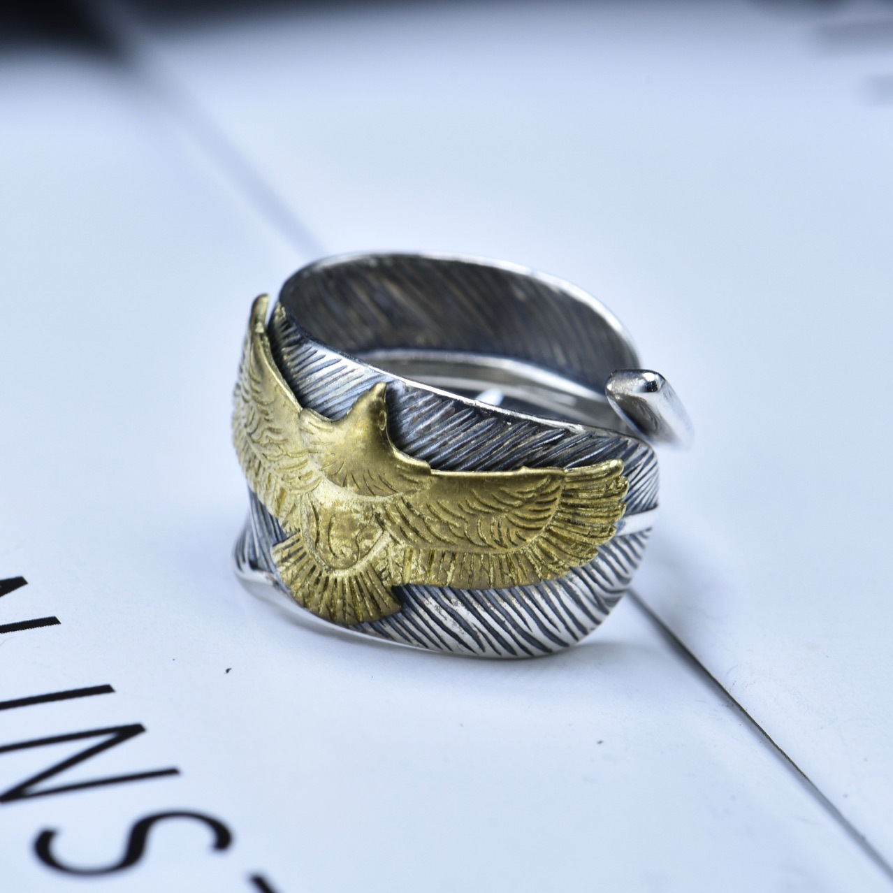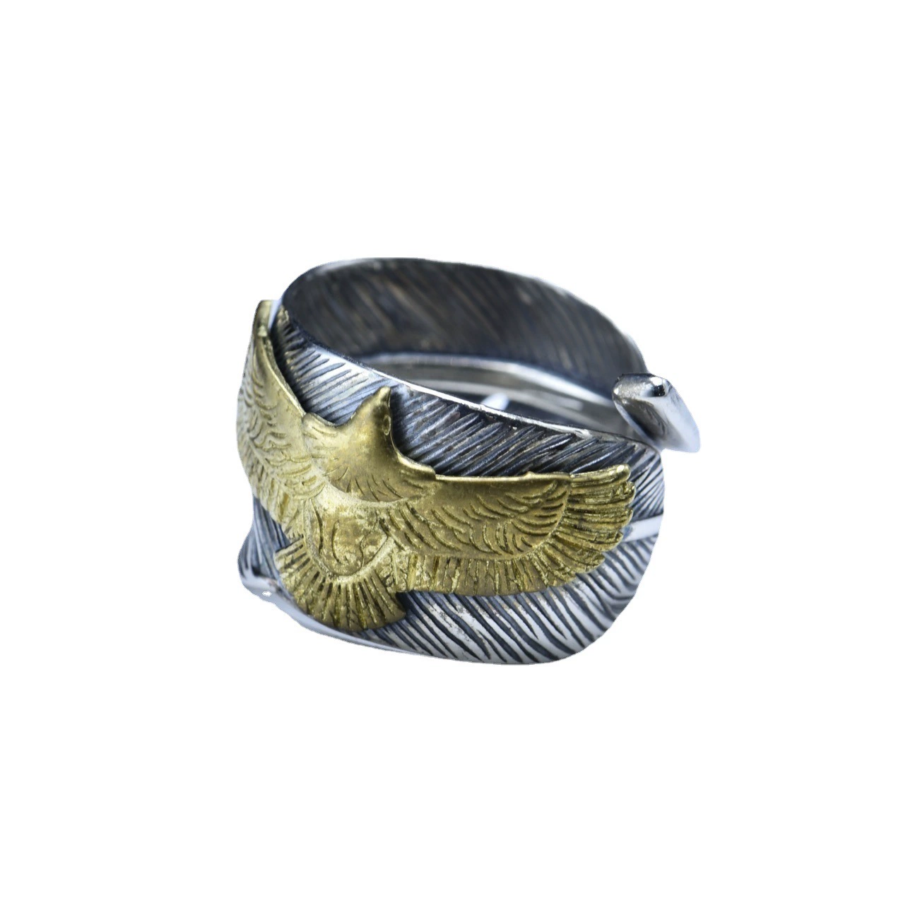 - Eagle - shaped Design: Inspired by an eagle in flight, the ring vividly depicts the wings and posture of the eagle with smooth and powerful lines, showcasing the majesty and dominance of the eagle. The golden body of the eagle contrasts beautifully with the silver ring body, creating a striking visual impact.