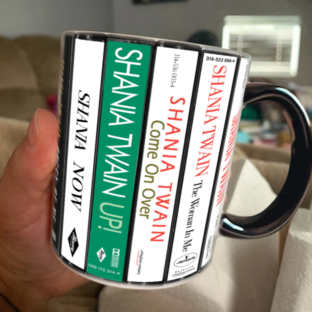 Shania Twain Albums Cassette Collection Retro Accent Edge-to-Edge Printed Mug