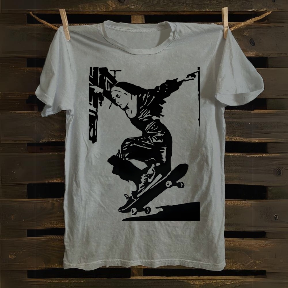 Skateboarding Nun cotton T-shirt