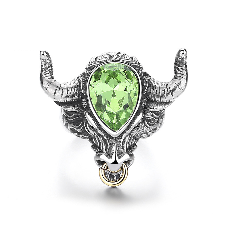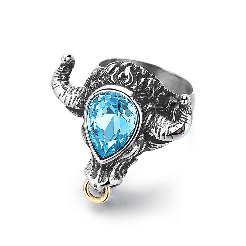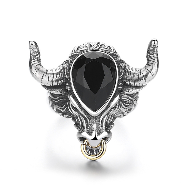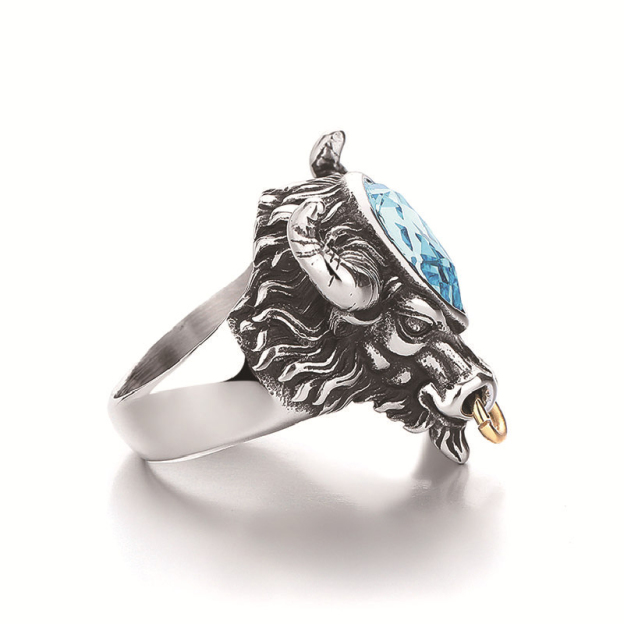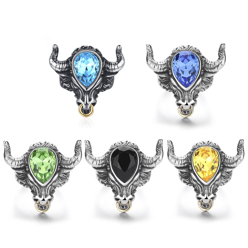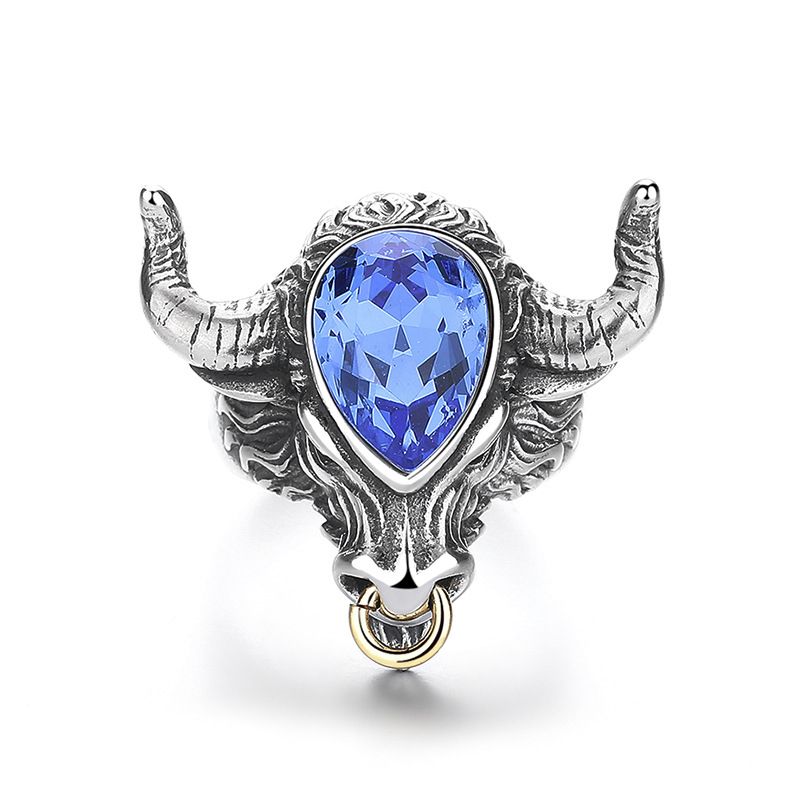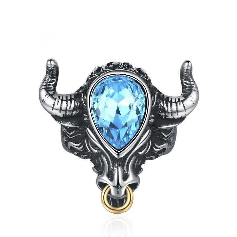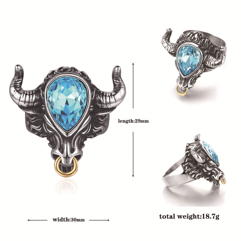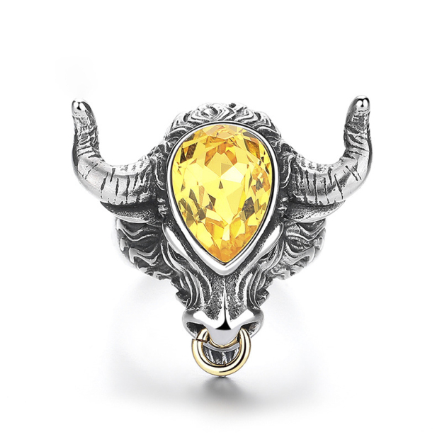 Black gemstones hold midnight wilderness mystery, blue crystals carry glacial coolness, yellow gemstones mirror sunlight in a yoke—6 gem options to switch up the bull totem’s style: Pair with black gems for dark hardcore, choose blue crystals for icy elegance, or go bold with yellow gems for street - ready contrast. One ring, multiple “bull energy” looks.