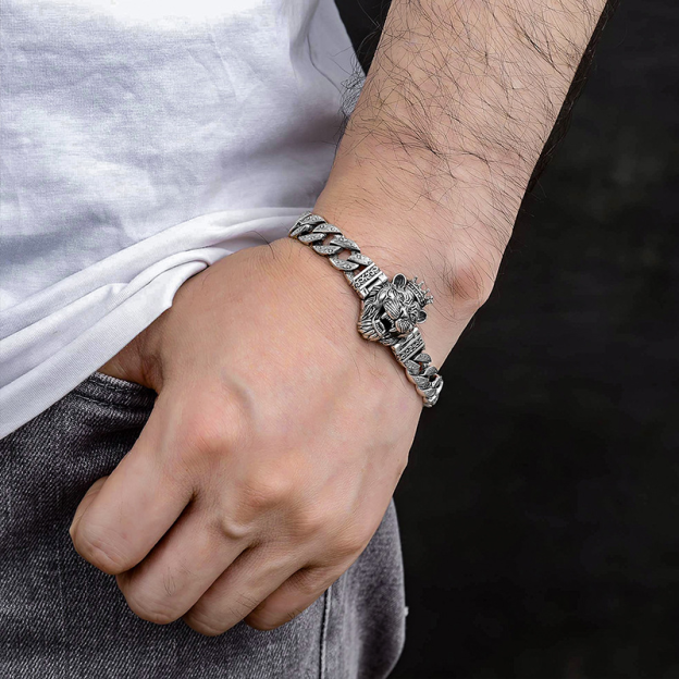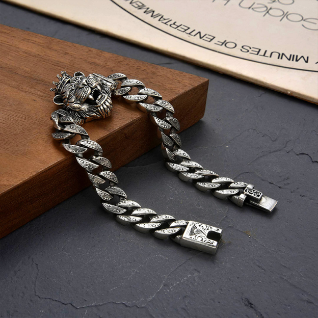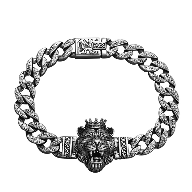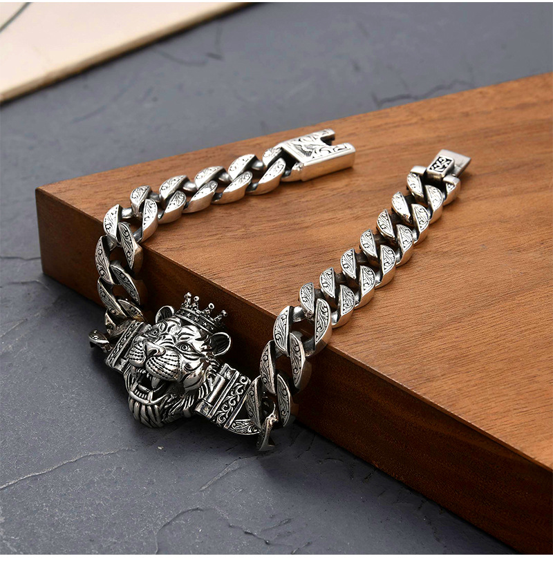 Combining the crown with the tiger head not only creates a strong visual impact but also implies that the wearer possesses king - like strength and dignity. Whether in daily life or career pursuits, it allows the wearer to radiate unparalleled confidence and presence. Additionally, the unique patterns on the bracelet chain add a touch of mystery and antiquity, as if narrating an untold legendary tale.