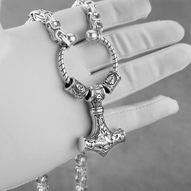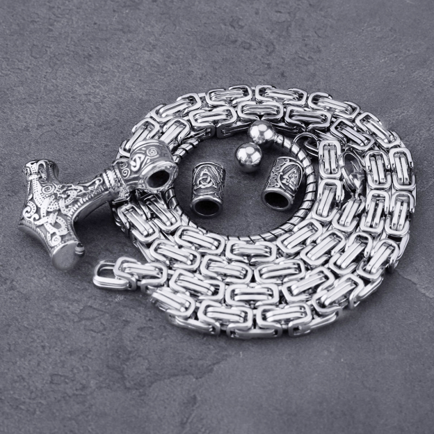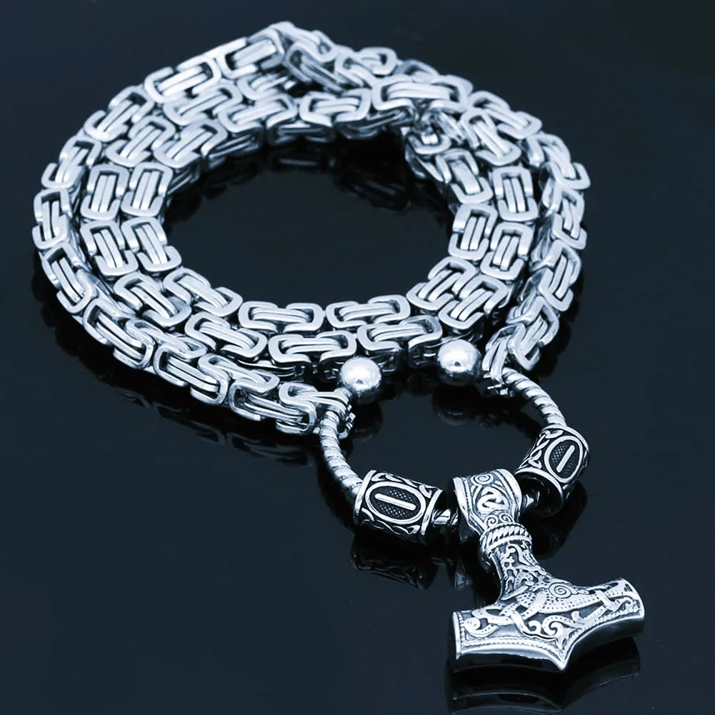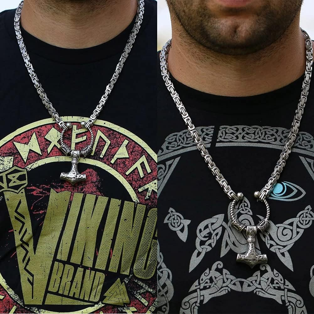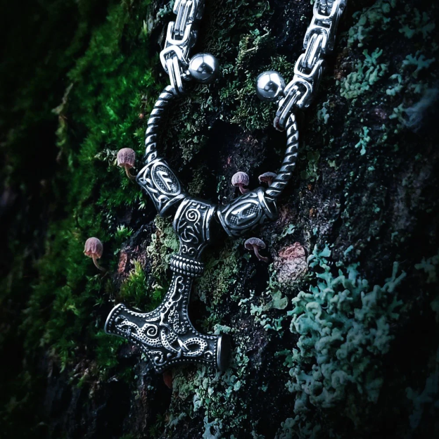 Wearing this Thor's Hammer pendant with Rune chain is more than a fashion choice; it’s a way to embrace the protective and empowering symbolism of Viking culture. The hammer is a talisman, believed to shield the wearer from negative energies and offer strength in the face of adversity. The Runes, with their ancient meanings, add layers of spiritual protection and wisdom. Together, they create a powerful symbol that empowers the wearer, evoking the courage and resilience of the Vikings as they navigate the modern world.