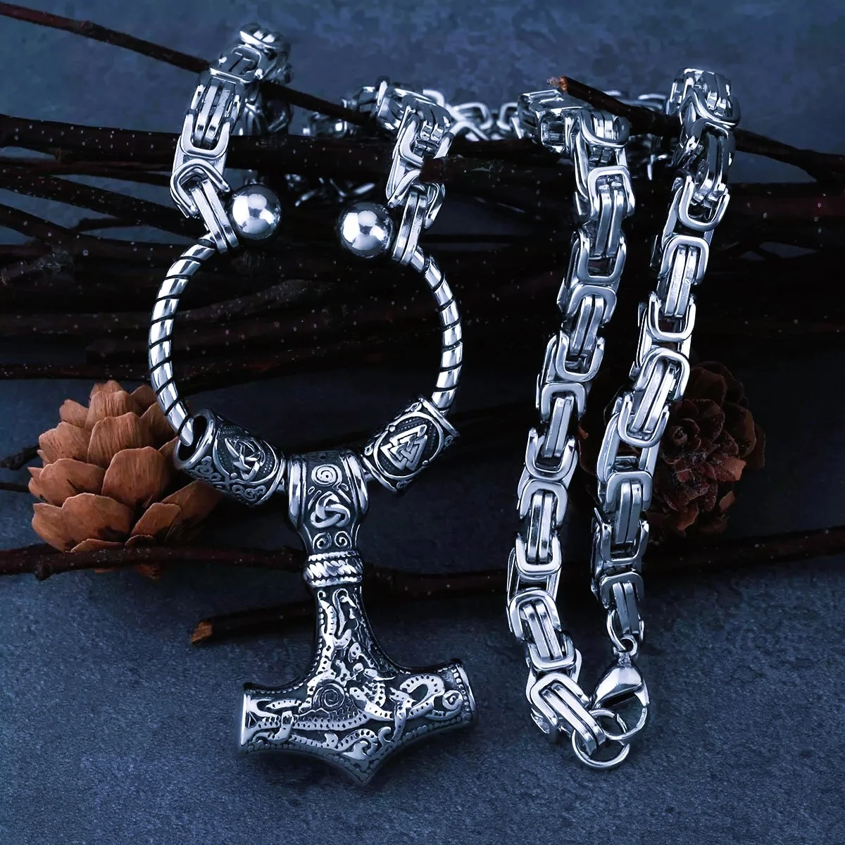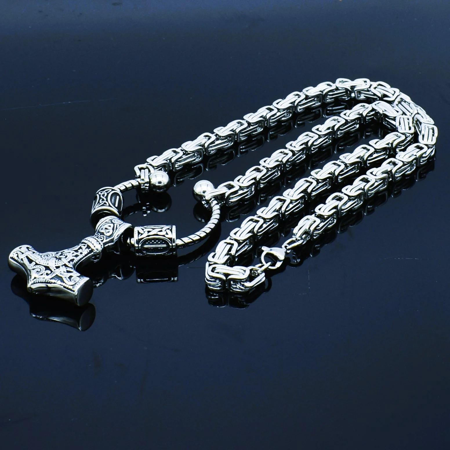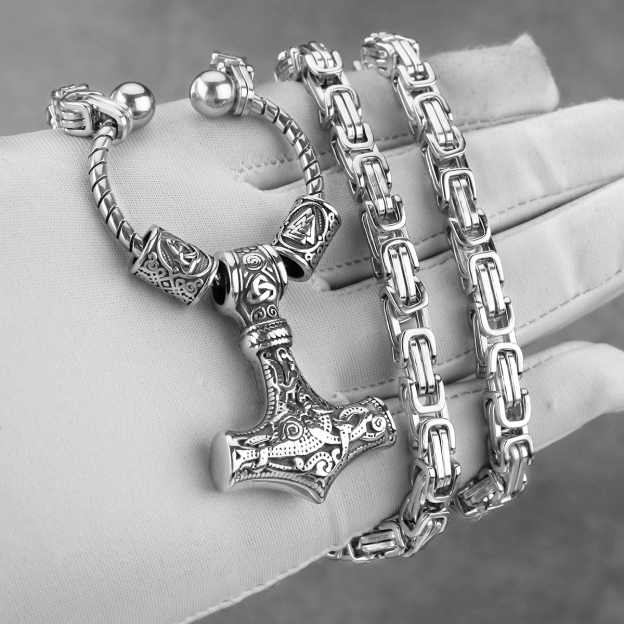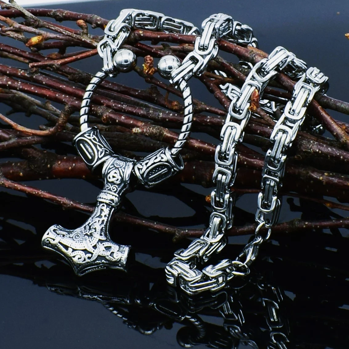 Wearing this Thor's Hammer pendant with Rune chain is more than a fashion choice; it’s a way to embrace the protective and empowering symbolism of Viking culture. The hammer is a talisman, believed to shield the wearer from negative energies and offer strength in the face of adversity. The Runes, with their ancient meanings, add layers of spiritual protection and wisdom. Together, they create a powerful symbol that empowers the wearer, evoking the courage and resilience of the Vikings as they navigate the modern world.
