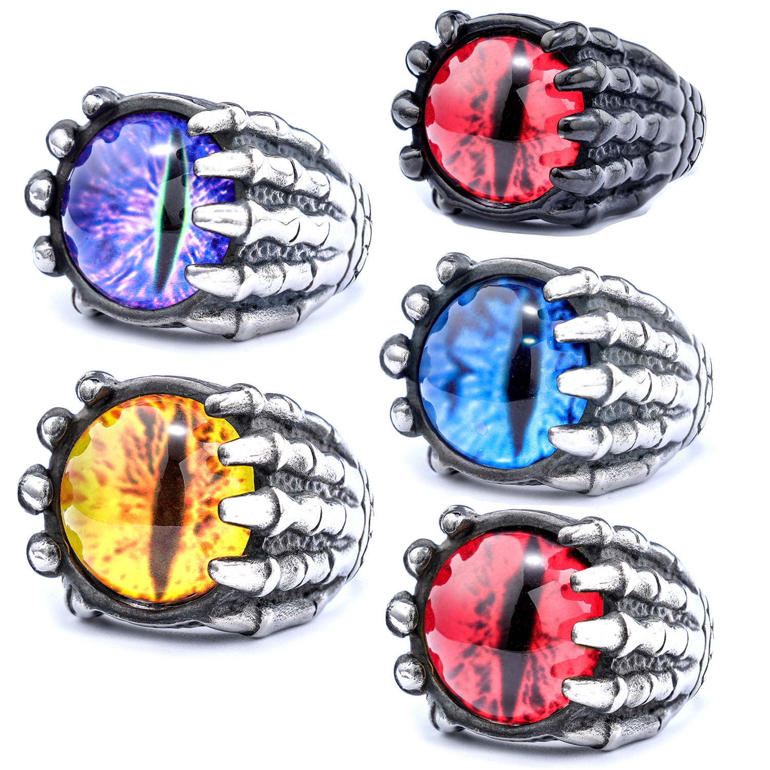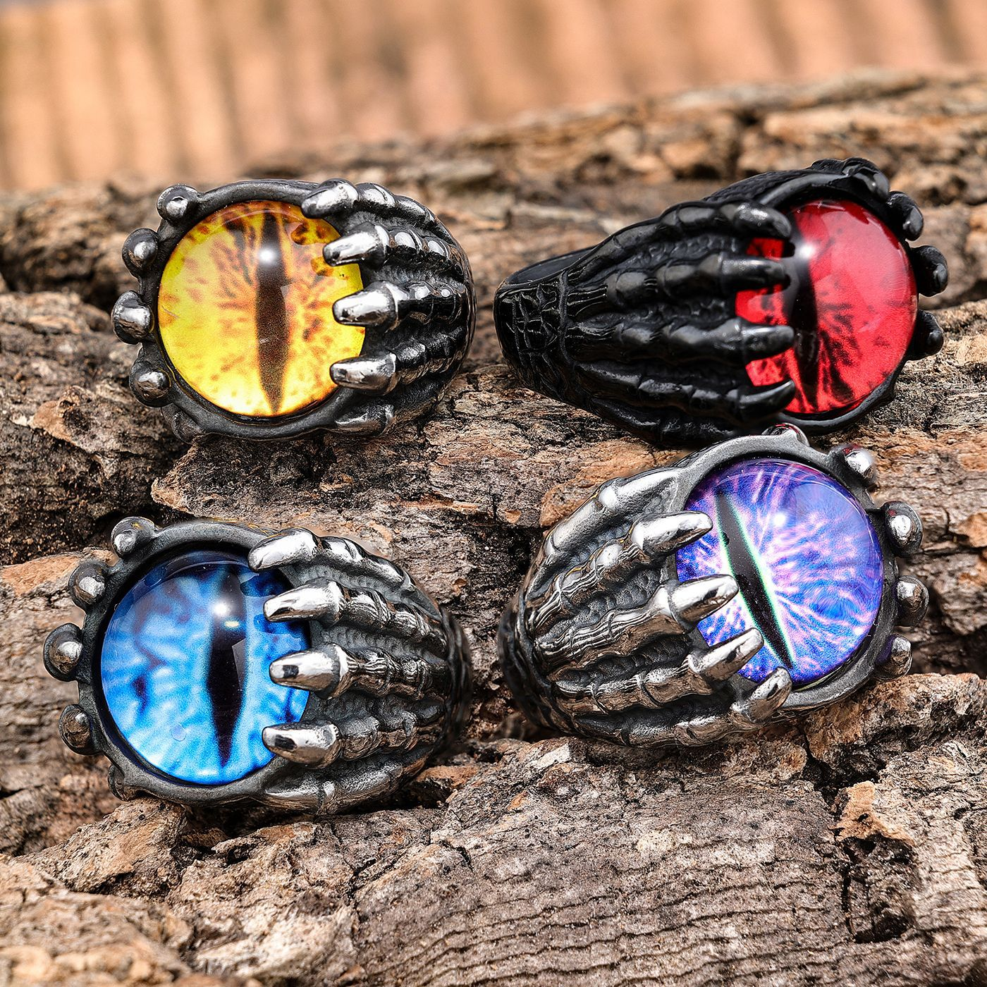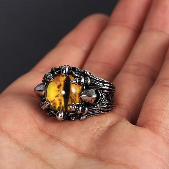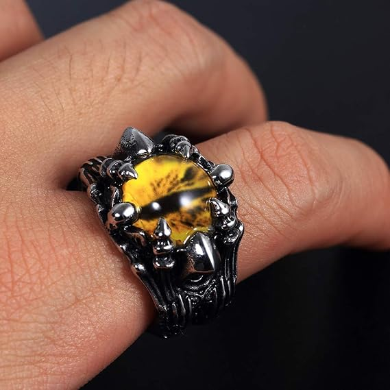 👁️On the verge of the mysterious magical world, this stainless - steel ring with a beast - like gemstone eye is like a key to unknown powers. Crafted from high - quality stainless steel, it forms a sturdy body that is wear - resistant and corrosion - proof, undaunted by the passage of time. The inlaid beast - like gemstone is like the gaze of an ancient mythical beast, flowing with mysterious and unpredictable light, deep and captivating. Surrounded by skull and claw - shaped decorations, there seems to be an undercurrent of mysterious magic. When you wear it, you gain the courage to confront the ordinary, taking unruly steps on the daily streets, unleashing wild charm at themed parties, and transforming into a mysterious master in role - playing, controlling your own fantasy power.