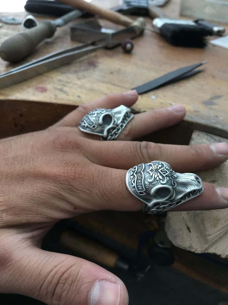 - Dark Style : Paired with black leather jackets, black jeans, and Martin boots in a dark - style outfit, the silver color and skull design of the ring complement the overall style, enhancing the mysterious and cool temperament of the dark style. It is suitable for wearing at dark - themed parties, rock concerts, etc., fully showing your individuality. 🖤