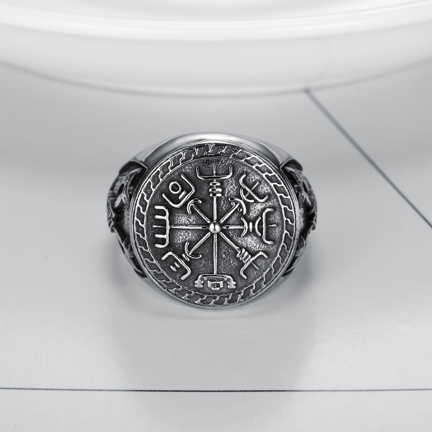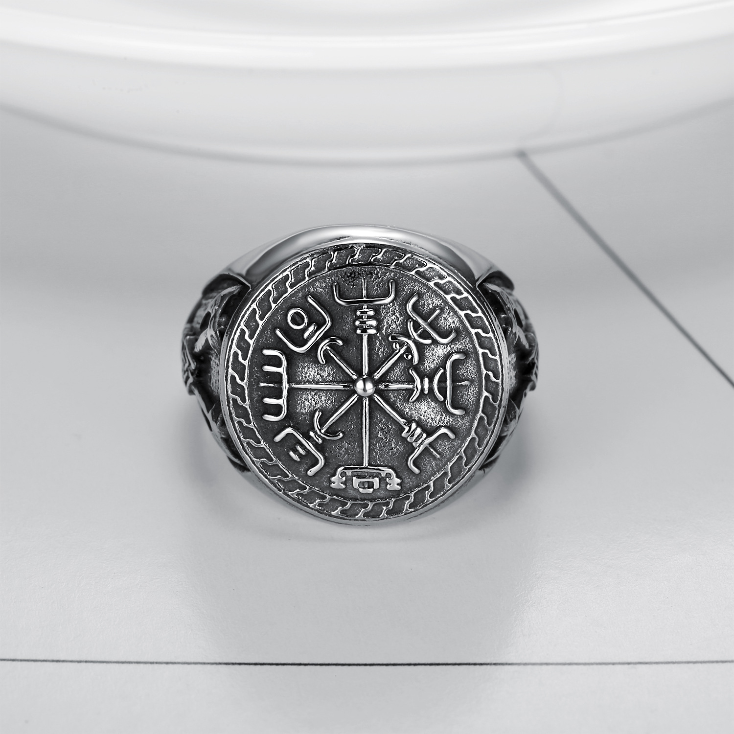 Stainless Steel Viking Totem Ring Double Axe Men's Titanium Ring
