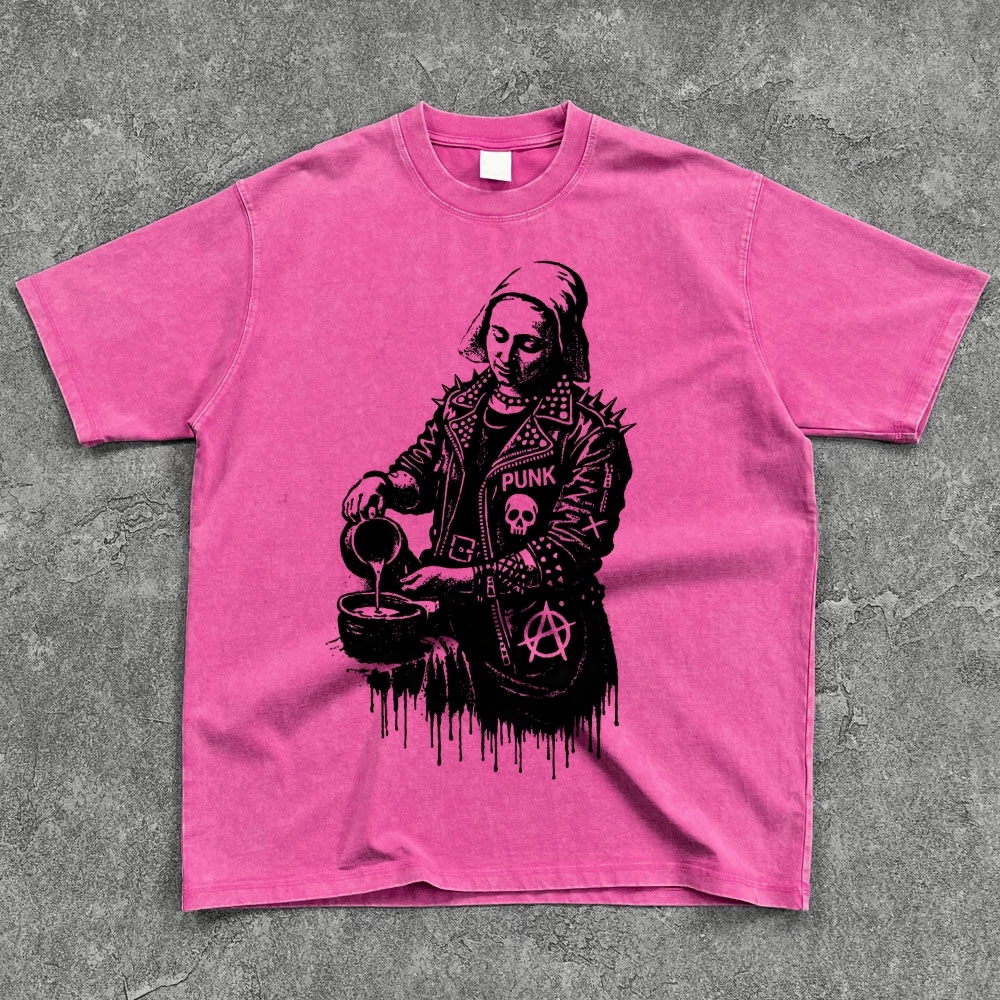 The Milkmaid Punk street art Washed Oversize T-Shirt