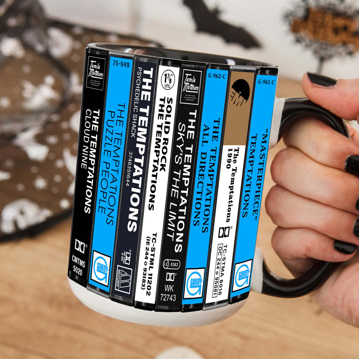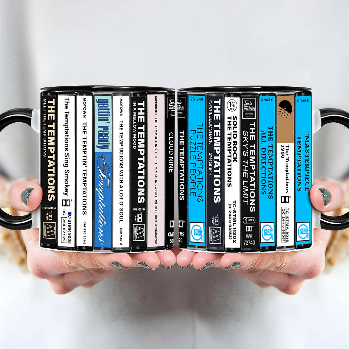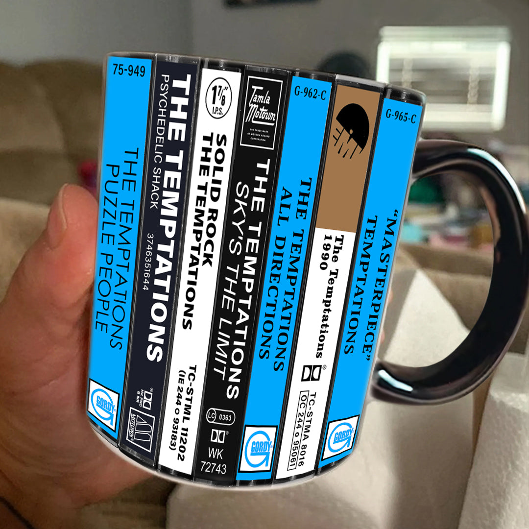 The Temptations Albums Cassette Collection Retro Accent Edge-to-Edge Printed Mug