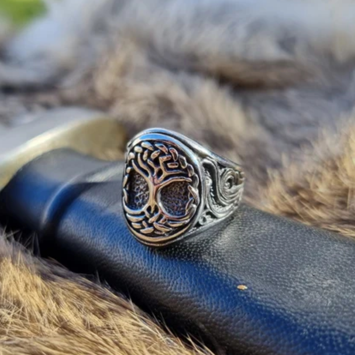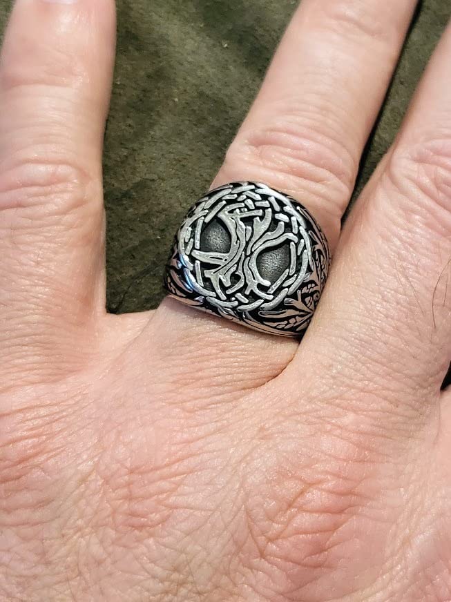 Titanium Steel Ring - A Retro and Imposing Viking World Tree Ring Made of Stainless Steel