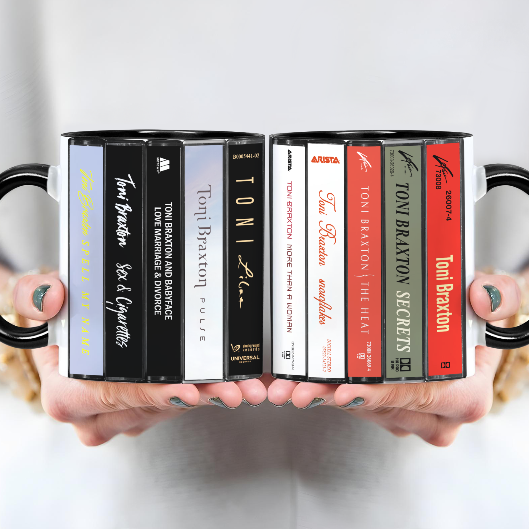 Toni Braxton Albums Cassette Collection Retro Accent Edge-to-Edge Printed Mug